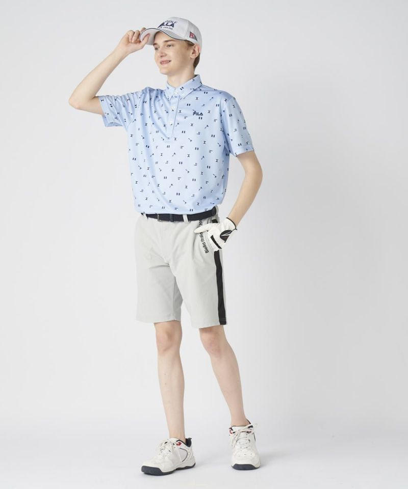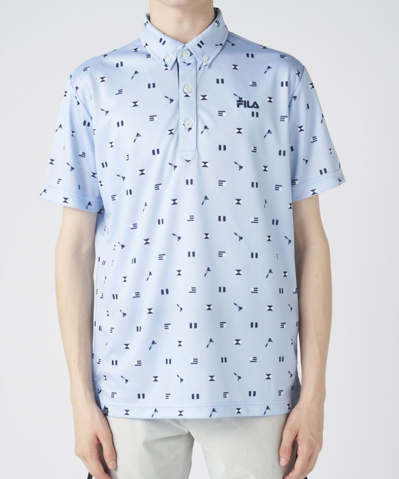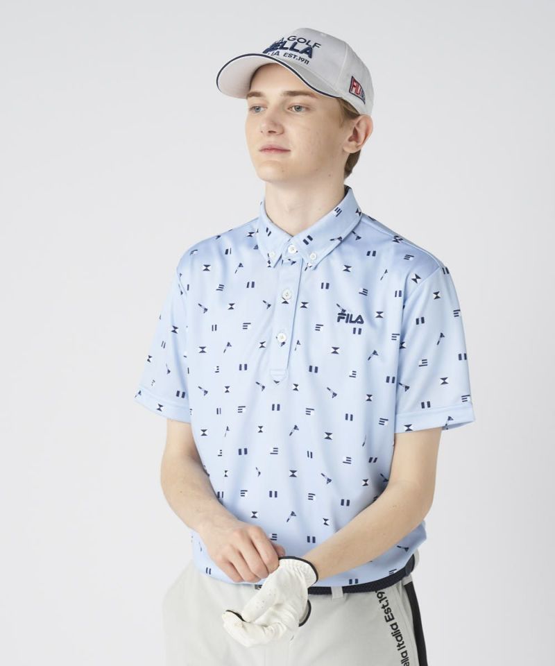フラッグなど、ゴルフにちなんだデザインがちりばめられたおしゃれな半袖シャツ。