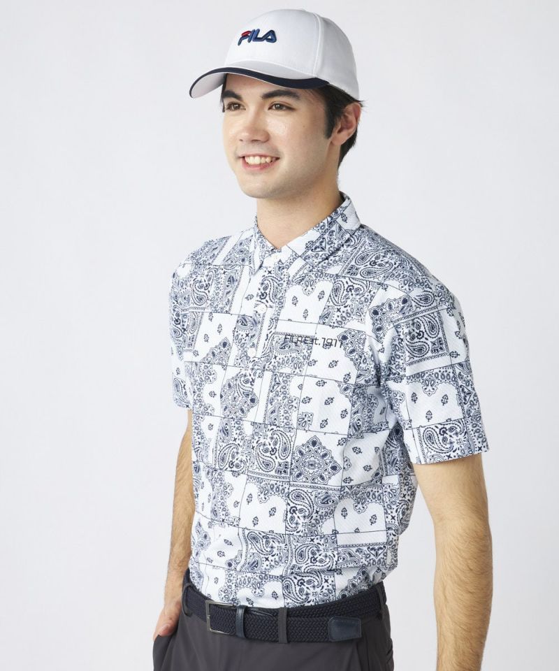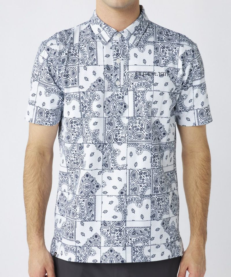 ペイズリー柄をランダムにいれた柄で、おしゃれな一枚です。シンプルなボトムスと合わせたコーディネートがおすすめです。春や秋にはインナーとして襟もとに柄を見せるのもおしゃれです。