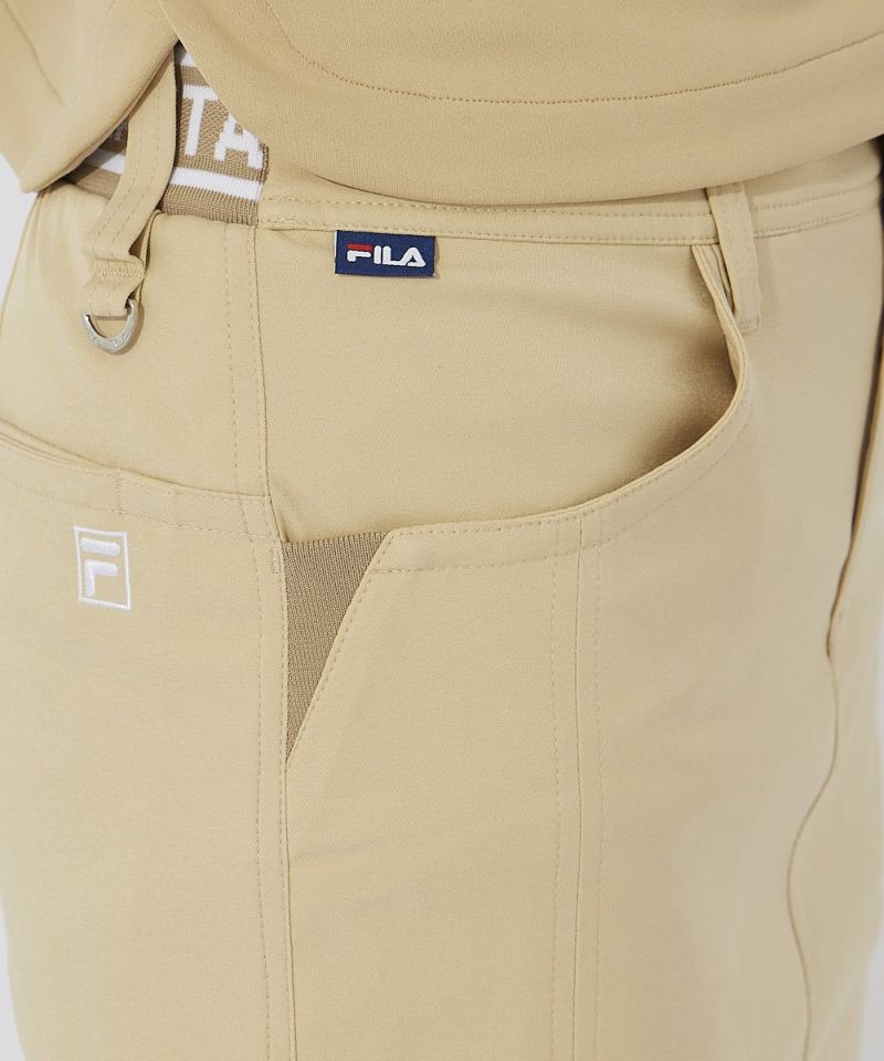 ストレッチ性に富んだ撥水素材を使用。ジャガードのウエストリブを取りいれたスポーティーなデザイン。裾スリットと後ろプリーツで女性らしい魅力をプラス。