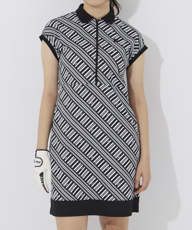 ウエスト位置を高めに設定した、腰高脚長効果のあるフレンチスリーブタイプのワンピース。ファスナー開きで着脱楽々。吸汗速乾、UV、遮熱や接触冷感など、機能たっぷりの素材を採用。