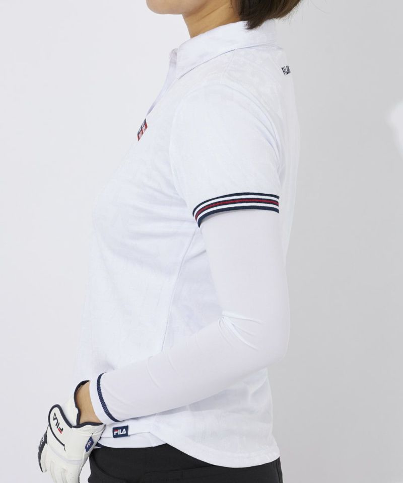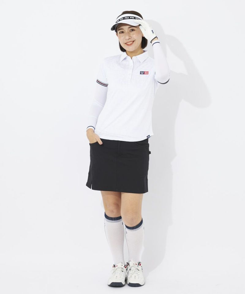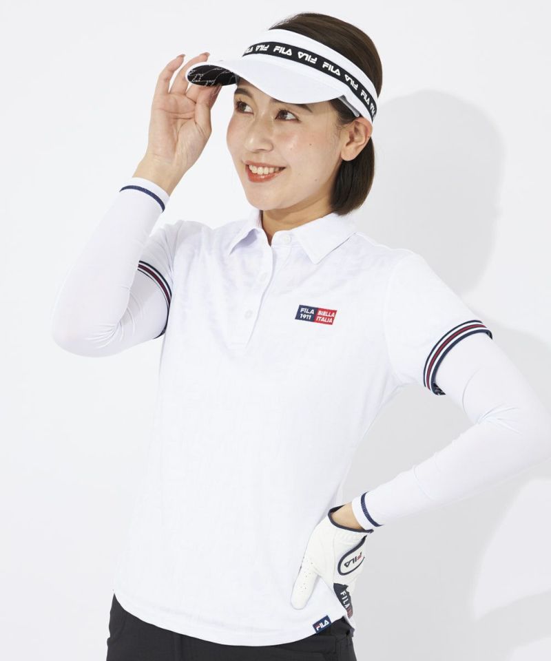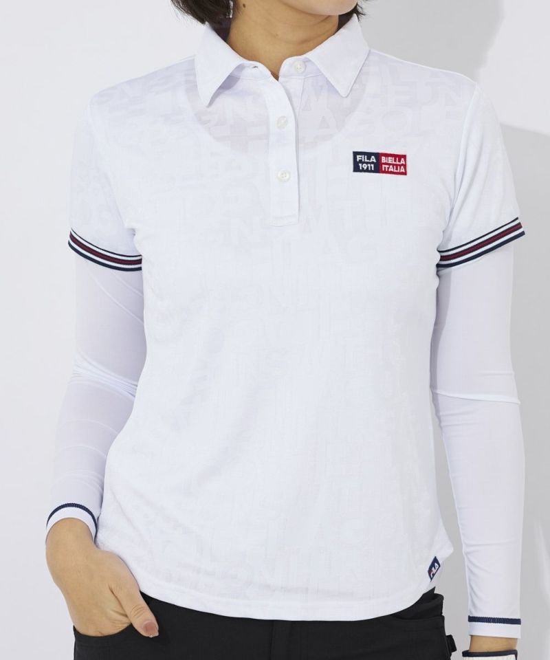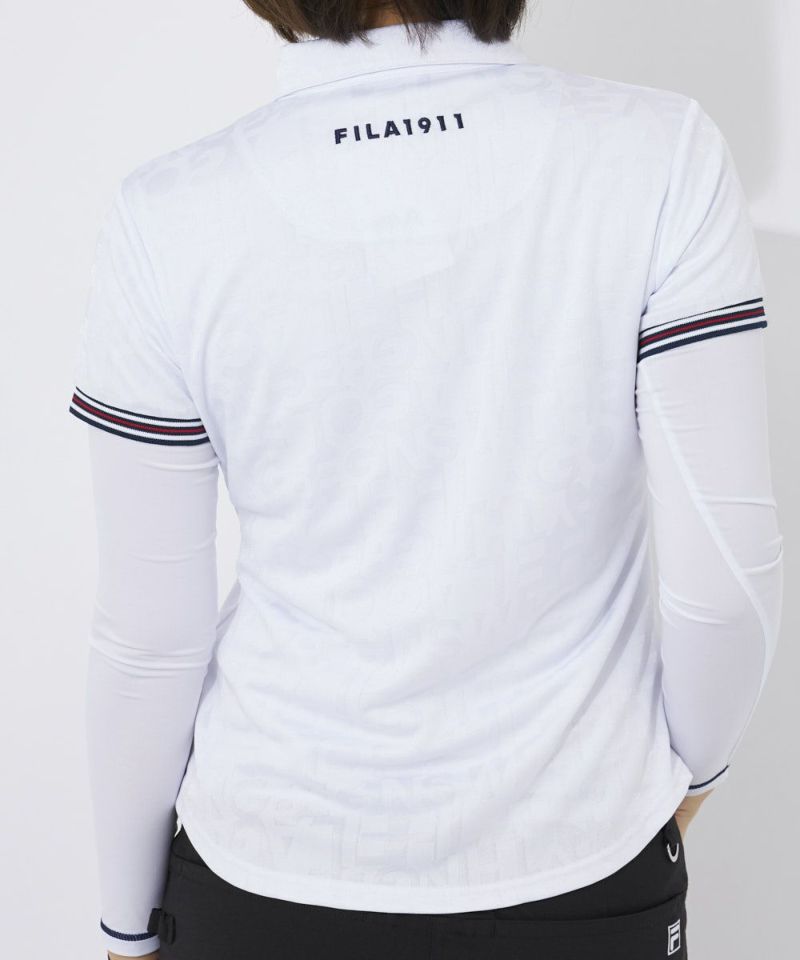 FILA GOLFのロゴをランダムにジャガードで表現したスポーティなシャツ。ストレッチ性の良い再生ポリエステル素材を採用しています。ジャガード生地は立体感+高級感があるため品のある印象に魅せてくれます。袖口リブのヘリテージストライプテープがアクセントに!左の胸元と背面のロゴがポイント