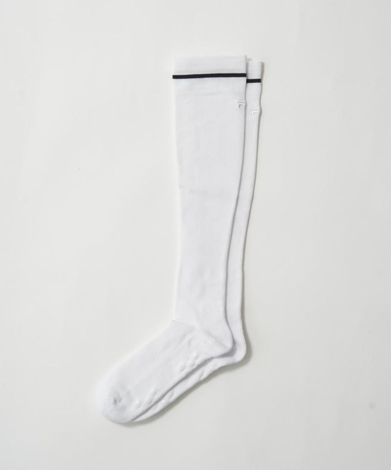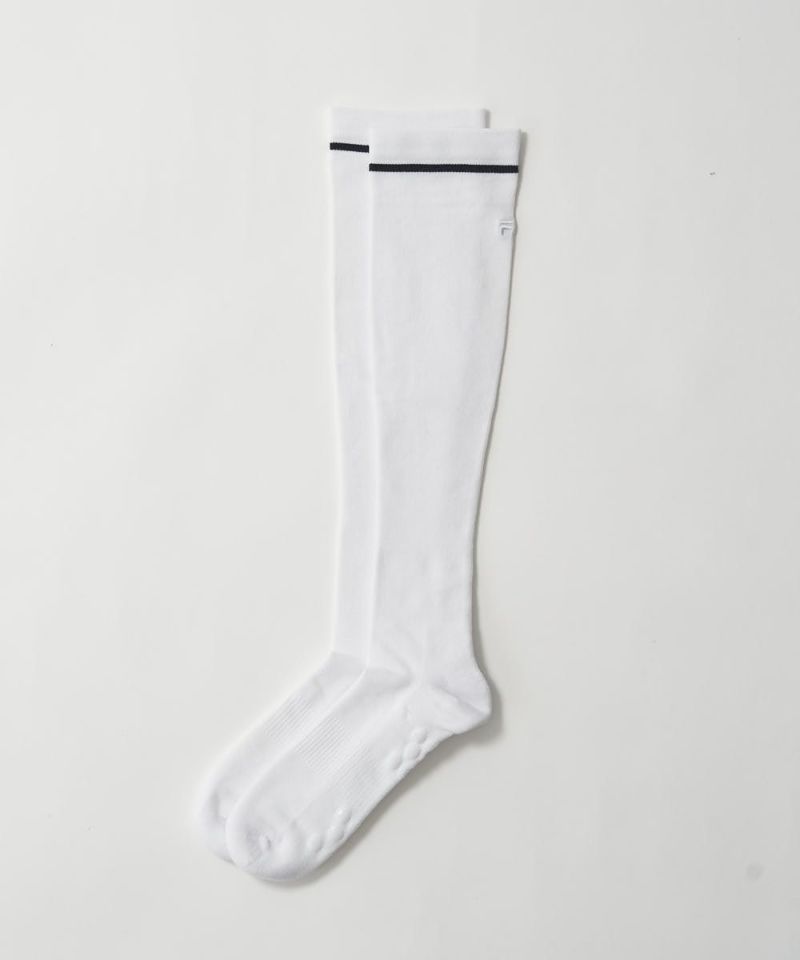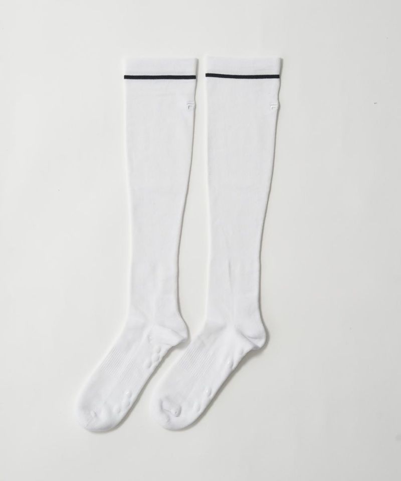 スッキリ感覚が味わえる段階着圧設計のハイソックス。幅広いコーディネートに活躍するシンプルデザイン。足底パイルやサポート編みで、プレイをサポート。