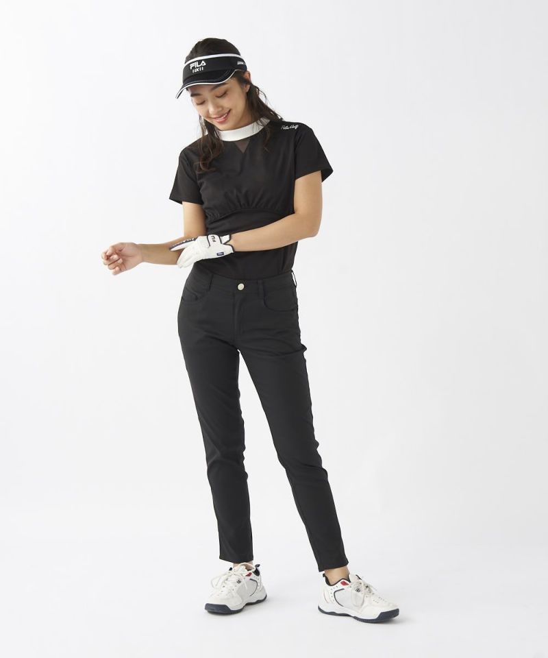 ストレッチ性に富んだ吸水撥水素材を使用。9分丈で裾上げいらず。裾口から風がとおり、涼しく着用できます。
