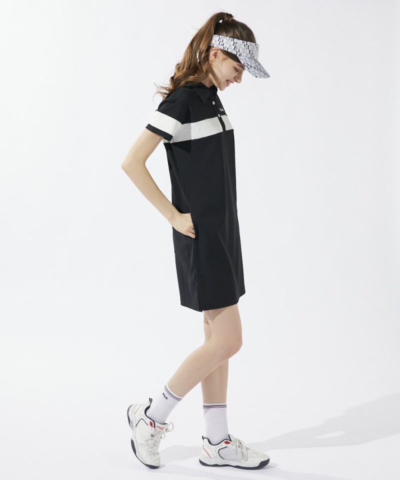 ジャガード素材 ライン入りワンピース|UVカット