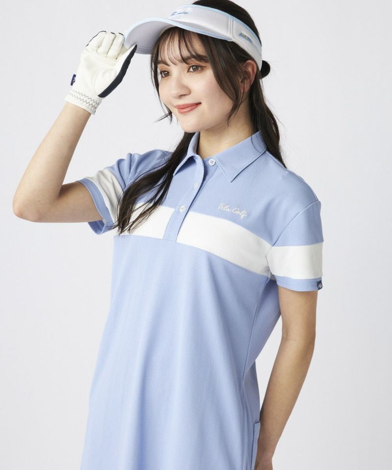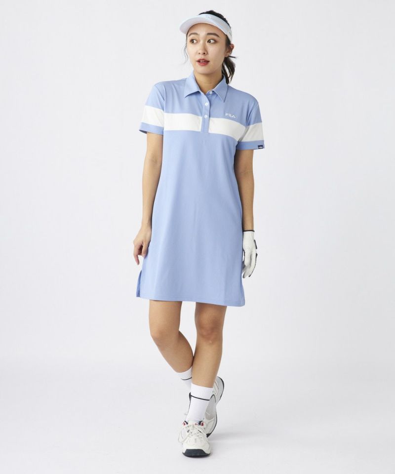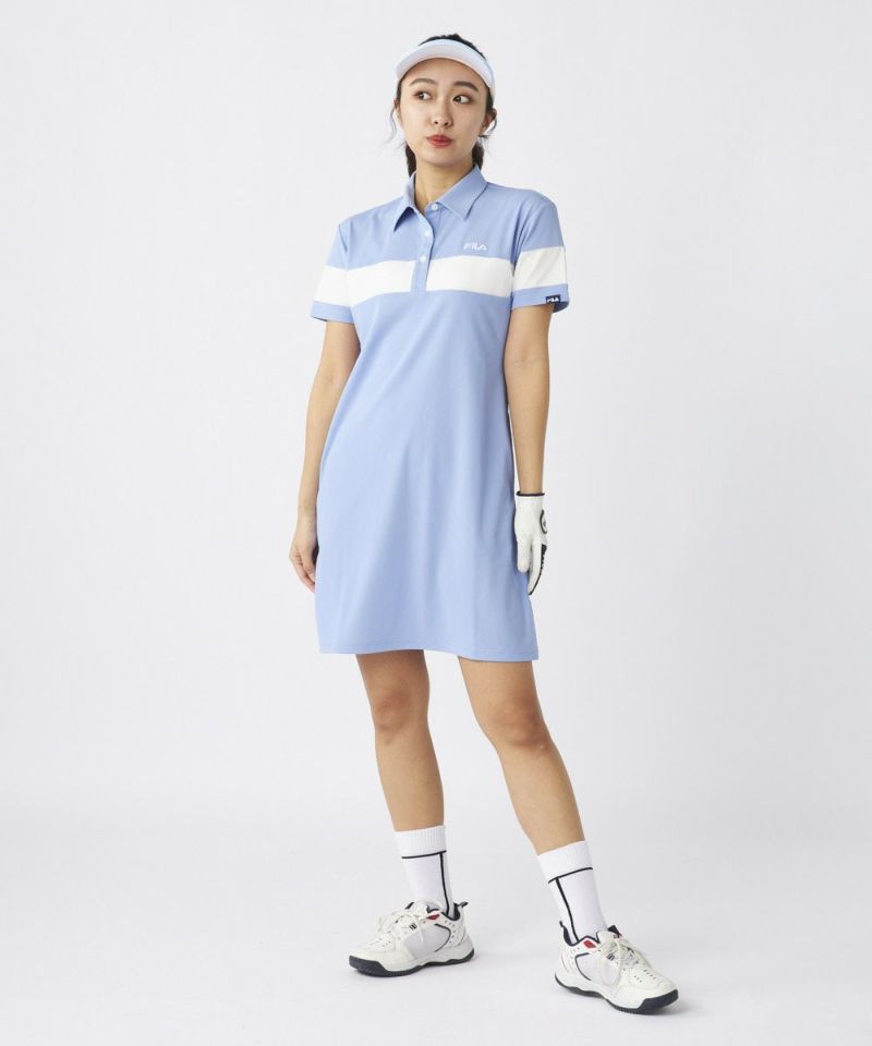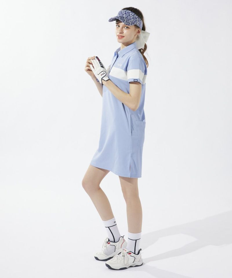 スポーティーでありながらも女性らしいシルエットが魅力のワンピースです。爽やかなライトブルーのカラーに、袖のホワイトのラインがアクセントとなり、シンプルながらも洗練されたデザインに仕上がっています。