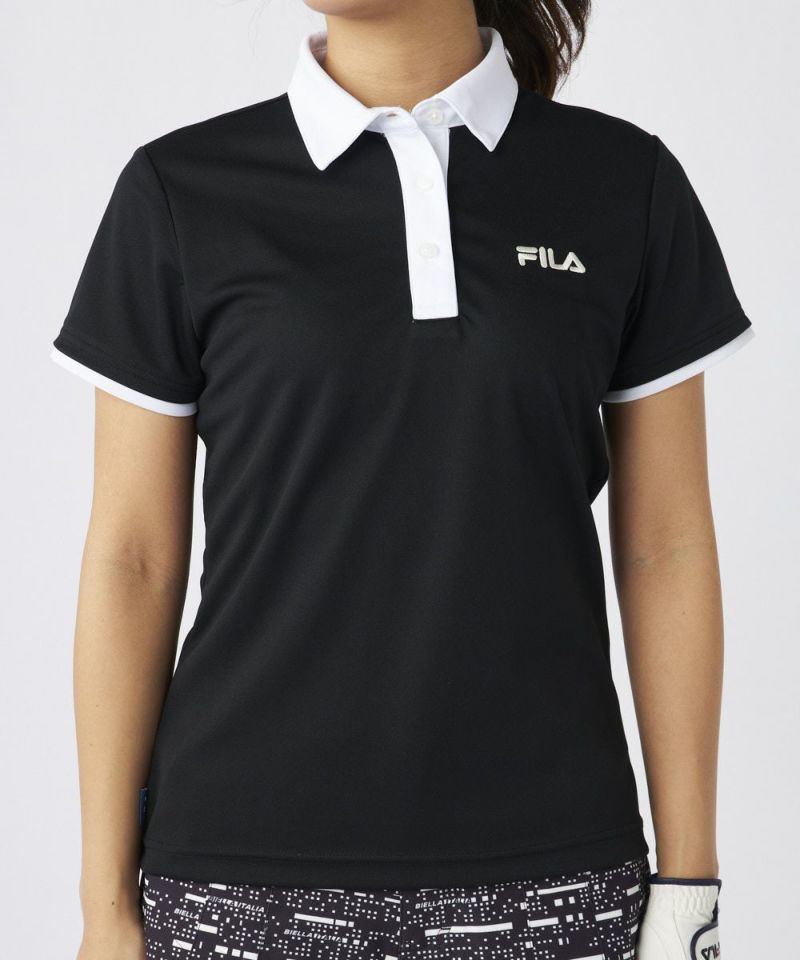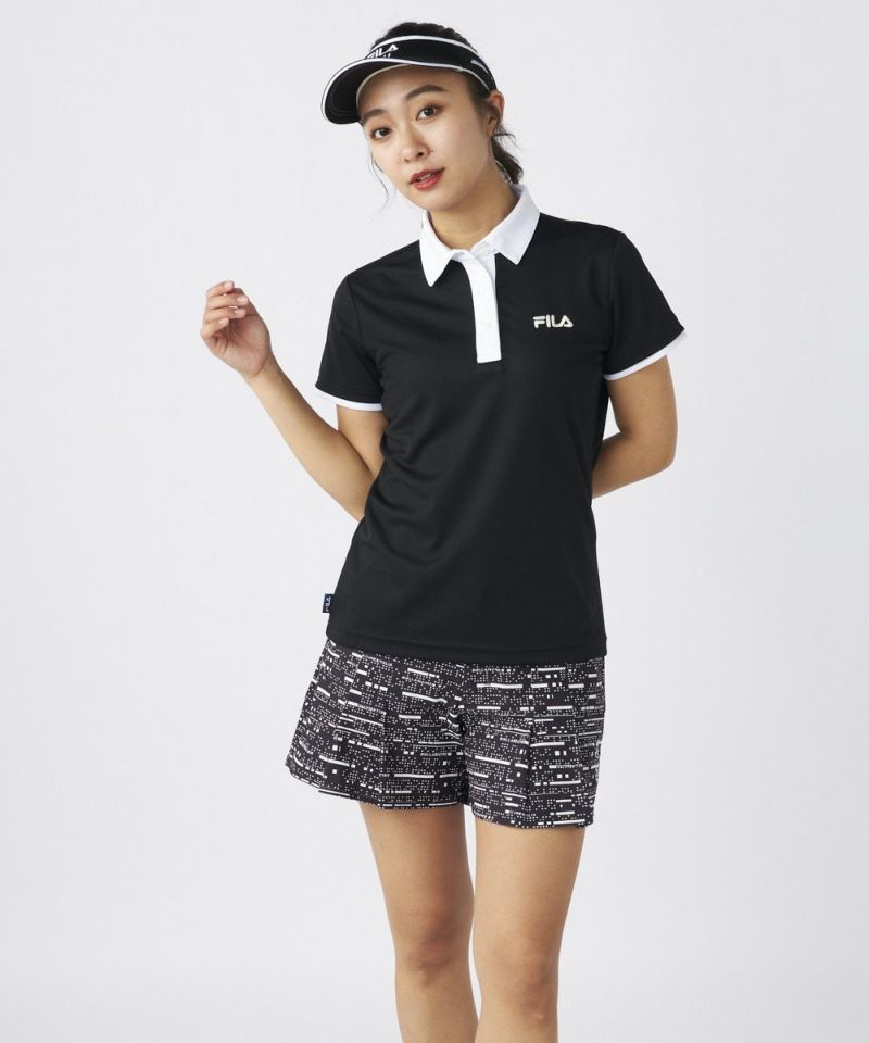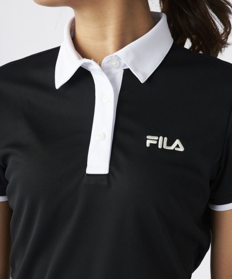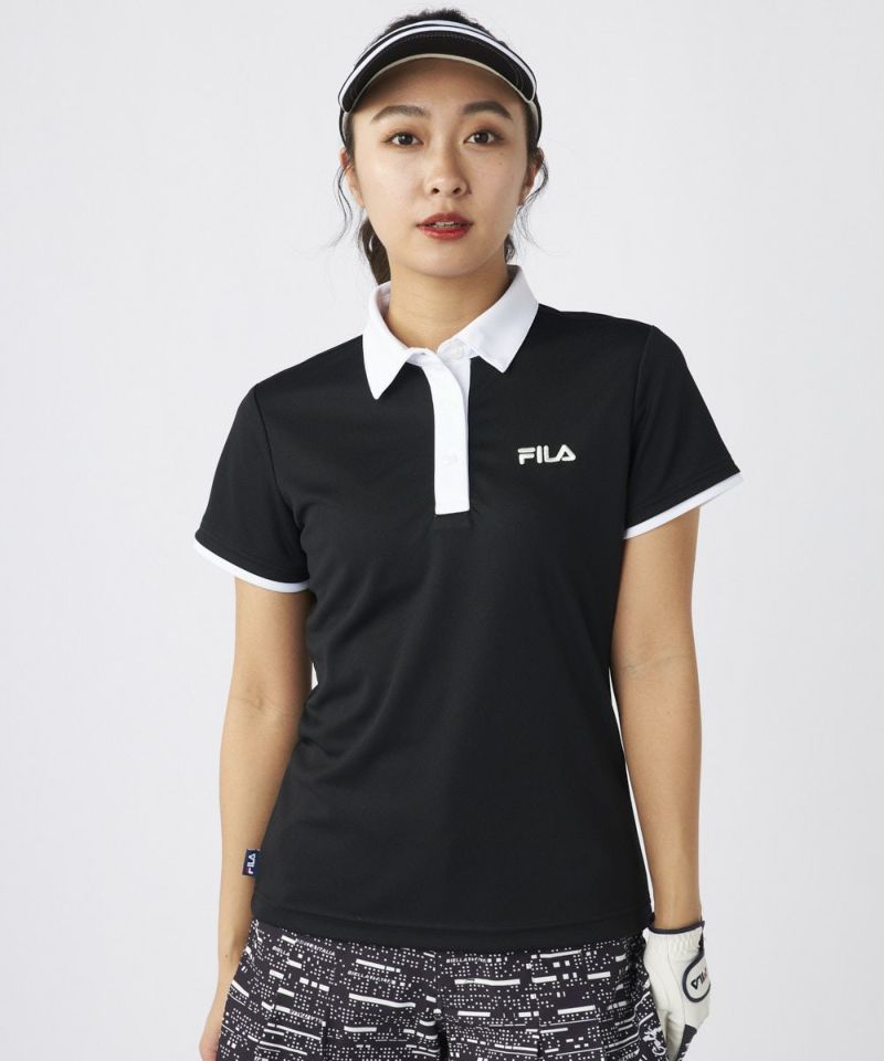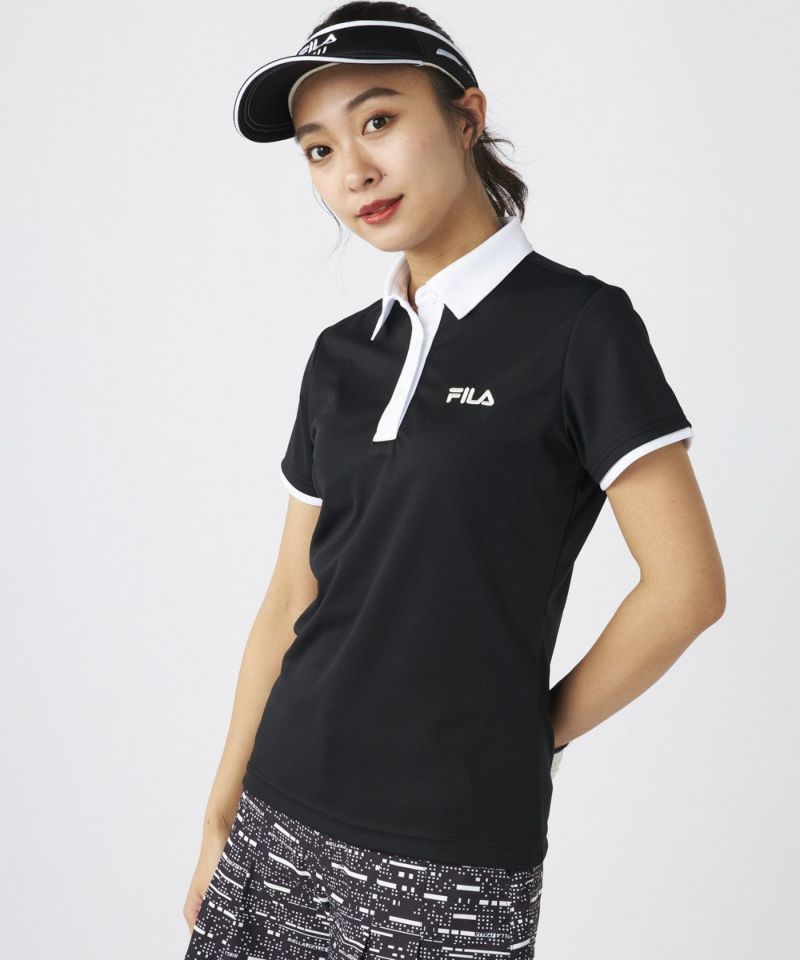 衿のバイカラーがかわいい半袖ポロシャツ。ベーシックなデザインなので、スカート、パンツ選ばずコーディネートを楽しめます。程よい丈感で、アウトでもインでもバランスよく着用いただけます。バックデザインにはフィラゴルフのキャッチコピー【Fun Golf】のテキストを小さく入れており、細部までこだわったオシャレなデザインです。