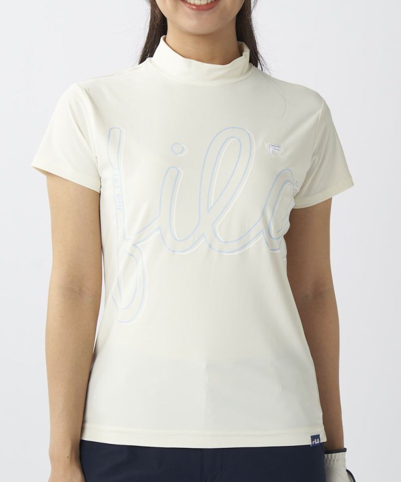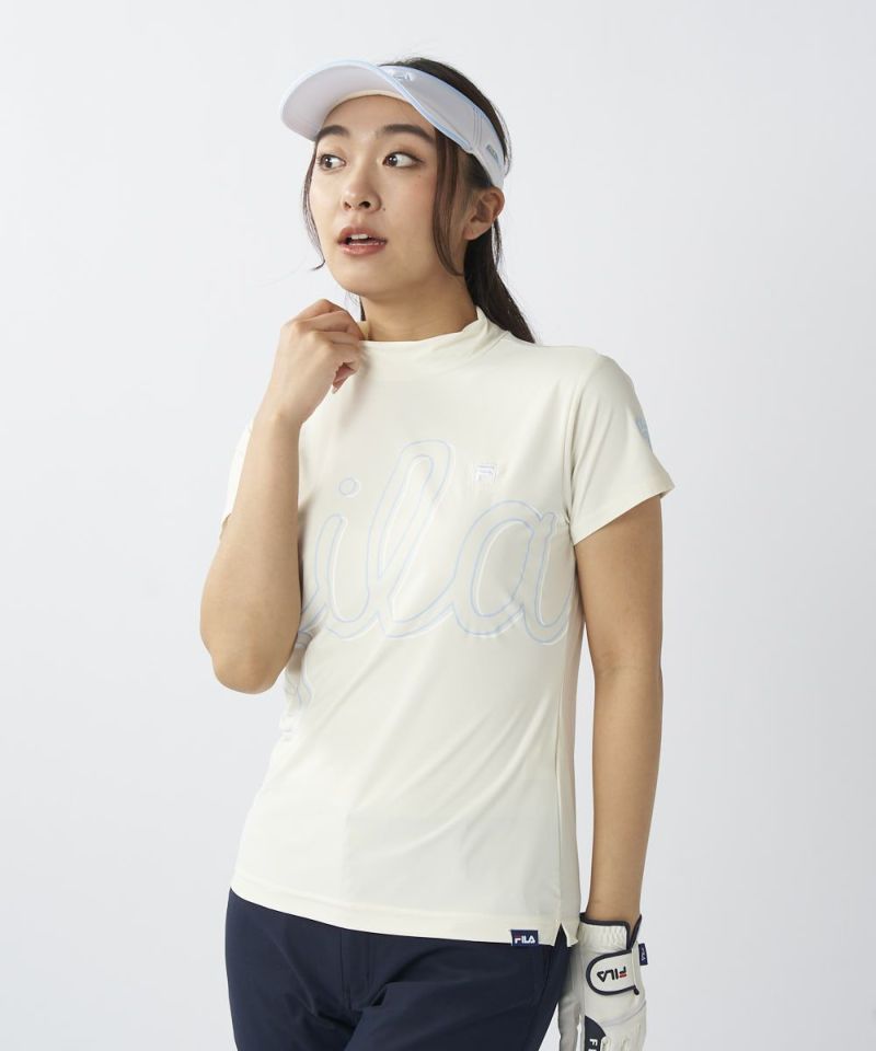 SUPER NYLONCOOLデザインロゴ モックネックシャツ | 吸汗速乾、UVカット、接触冷感