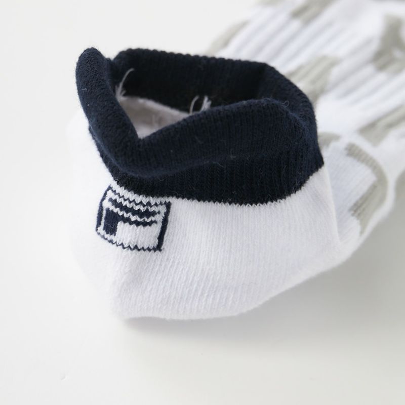 FILAのオリジナルタイポグラフィを大胆に編み地で表現した、デザイン性の高いアンクル丈ソックスです。スポーティでありながら都会的なセンスを感じさせるグラフィックは、ボトムスとのバランスを考慮した絶妙な丈感。また、足底には滑り止めプリントを施し、シューズ内での不必要なズレを防ぎ、力強いパフォーマンスをサポートします。