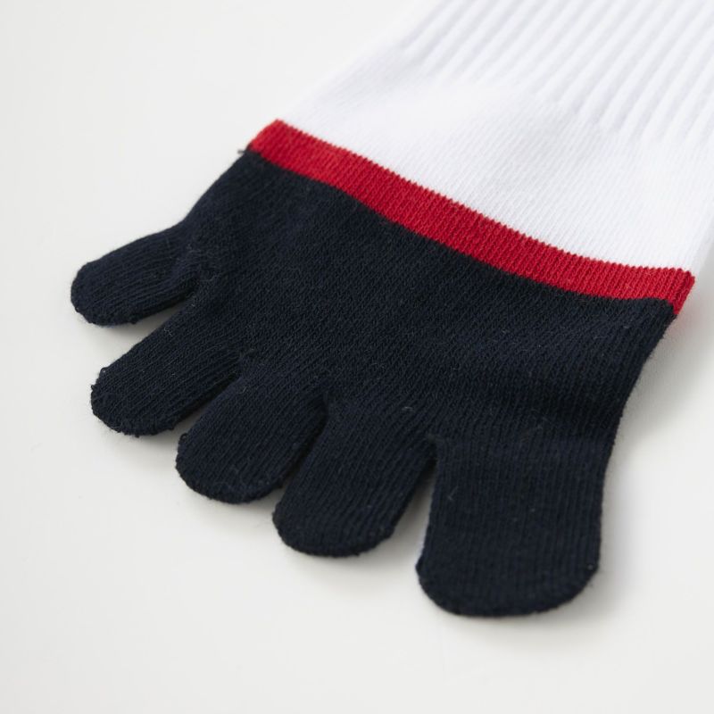 グリップ力と快適性を両立。バイカラーが映える高性能5本指ソックス