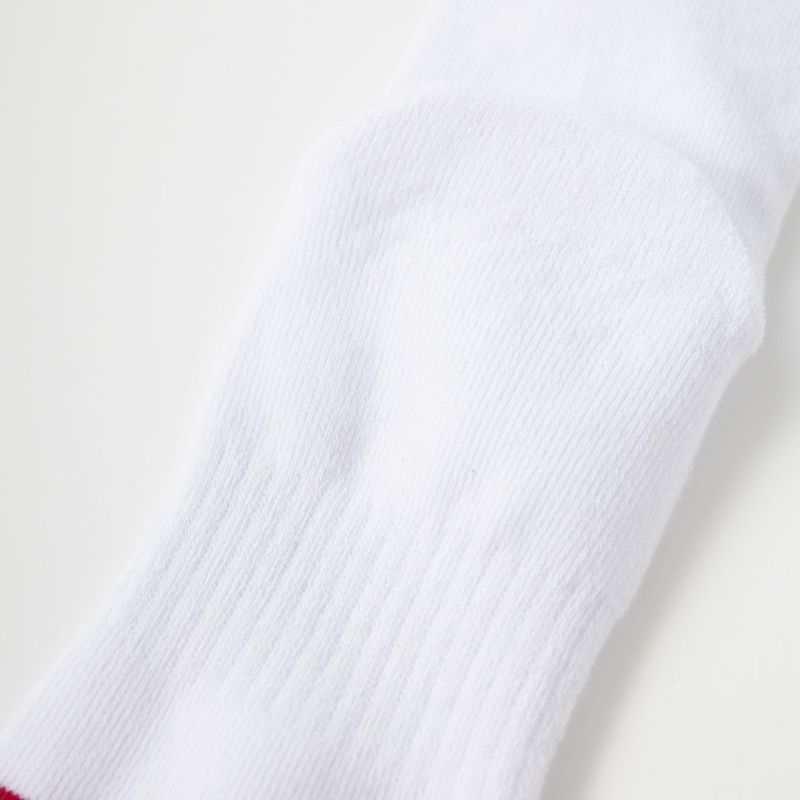 FILA GOLFらしい鮮やかなバイカラー(切替配色)がデザインのポイント。ショート丈でありながら、足元のスポーティなアクセントとして映え、洗練されたコーディネートを完成させます。足裏には滑り止めプリントを施し、シューズ内でのブレを徹底的に軽減。繊細なグリップ力が、力強いスイングと安定したパッティングを引き出します。