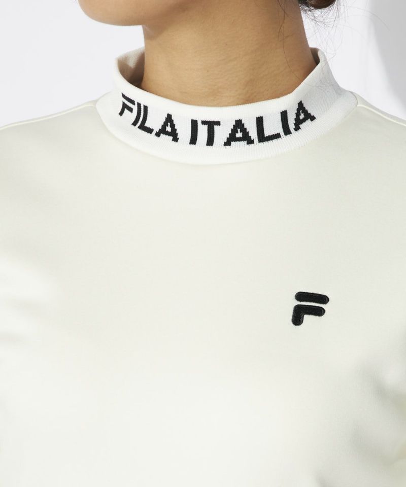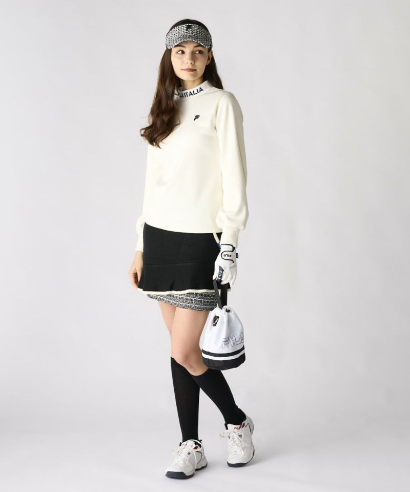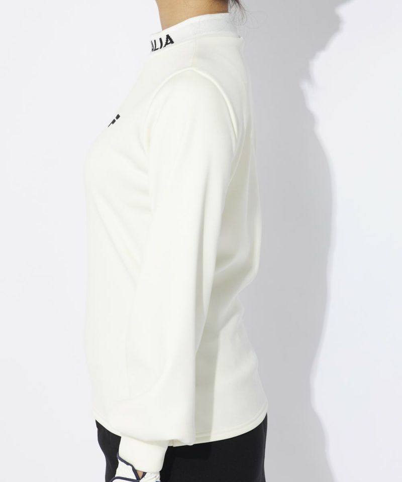 ジャガードのリブ衿がポイントのモックネックシャツ。袖口をふんわりさせたフェミニンなデザイン。裏面がベロア調の柔らかく肌触りの良いストレッチ素材を使用。袖口のボリュームは程よいボリューム感なので、インナーとしてもご利用いただけます。