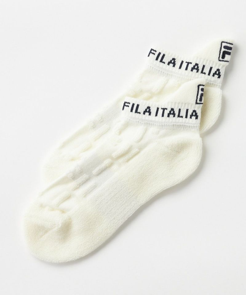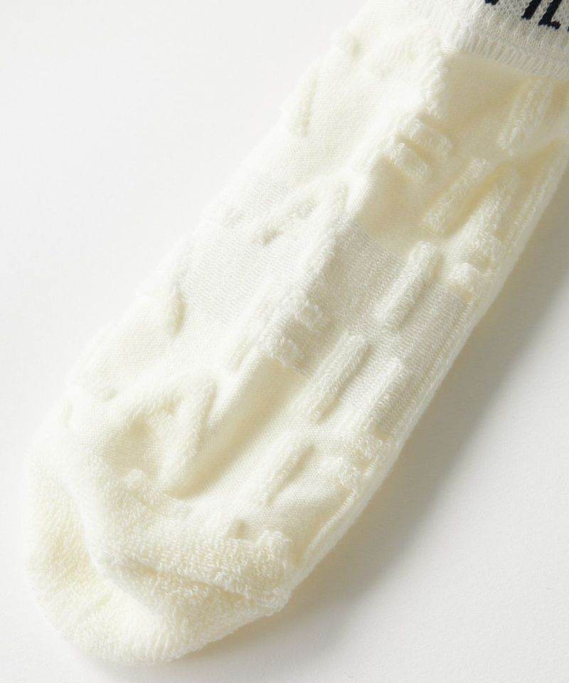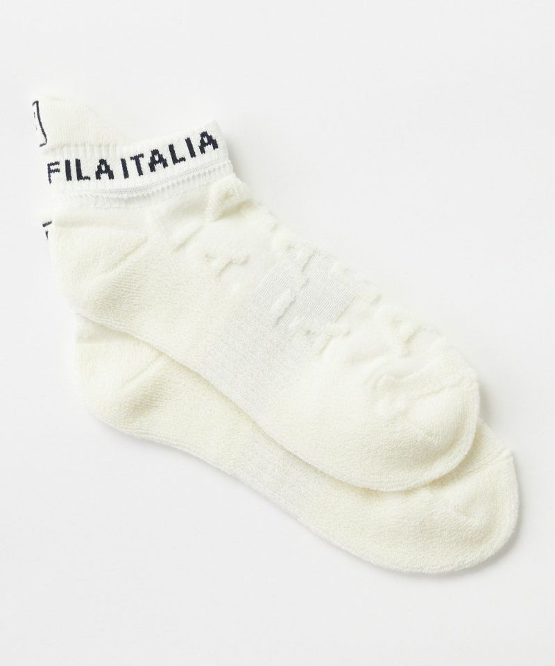 タイポグラフィ柄をパイル編みで表現した、スタイリッシュなミニ丈ソックスです。シンプルながらもFILAらしいモダンな柄が、足元の洗練されたアクセントに。シューズを脱いだ際にも、さりげないファッション性を発揮し、大人のスポーティスタイルを引き立てます。