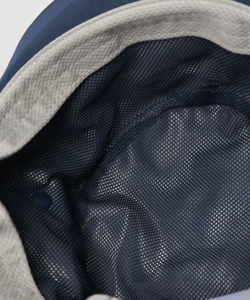 体感-15℃の遮熱性に優れたアルミ蒸着生地を裏地に使用した、熱中症対策のハット。暴対部分には通気性をもたらすメッシュパネルを配備。