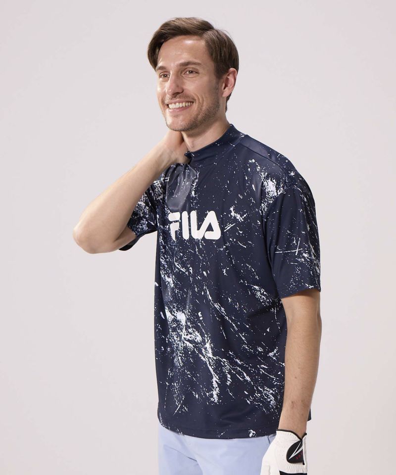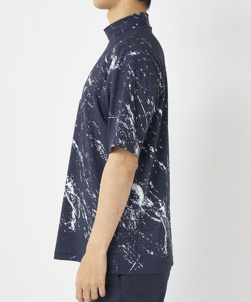 かすれプリント モックネックシャツ | 吸汗速乾・UVカット・接触冷感・ストレッチ