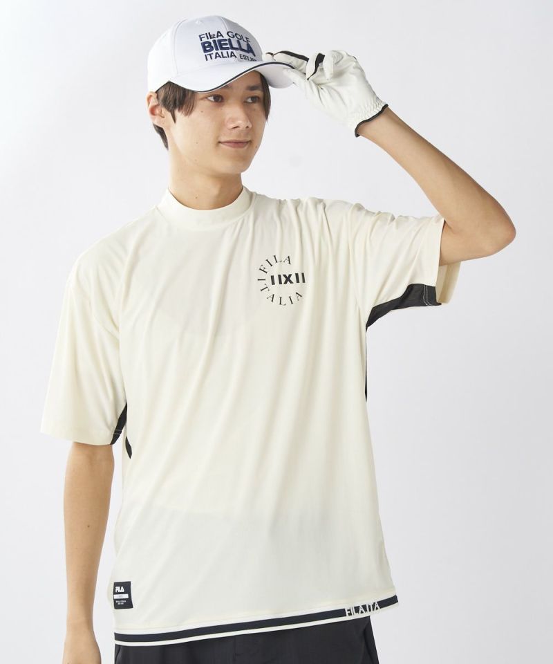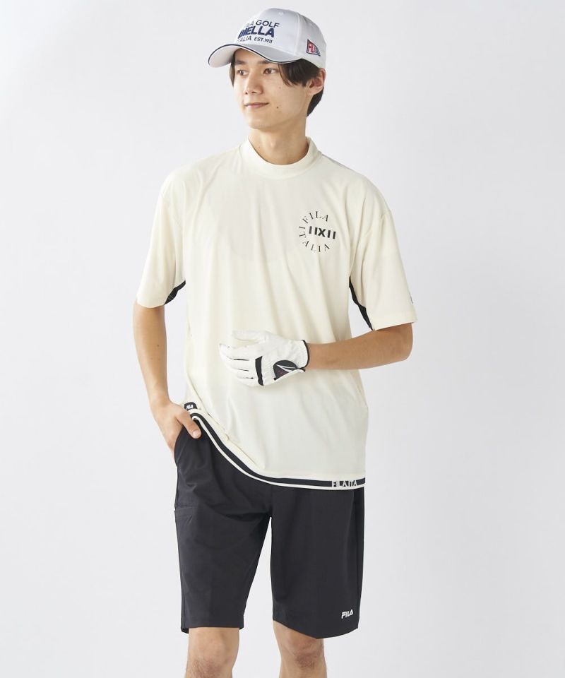 裾と脇部分にバイカラーのラインがポイントのモックネックシャツ。ひんやりするだけでなく、やわらかくてなめらかな着心地は一度着用するとやみつきに!もちろんストレッチ性も抜群なので、ストレスフリーでゴルフを楽しめます。夏ゴルフには必須アイテムなので、デザイン違いや色違いでのご購入がおすすめです!