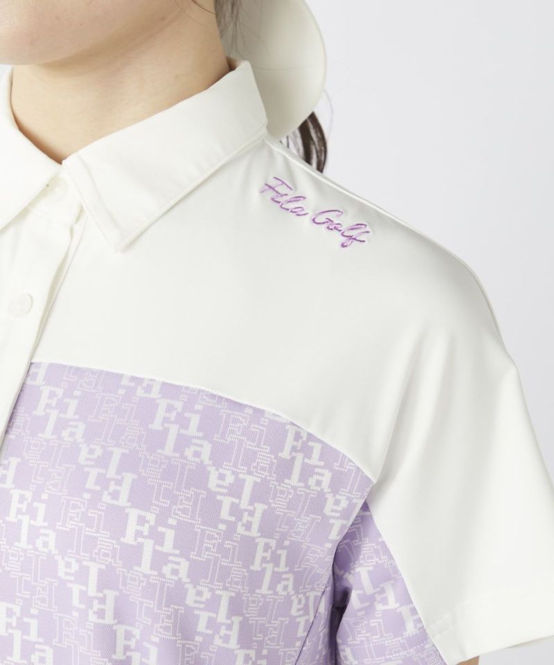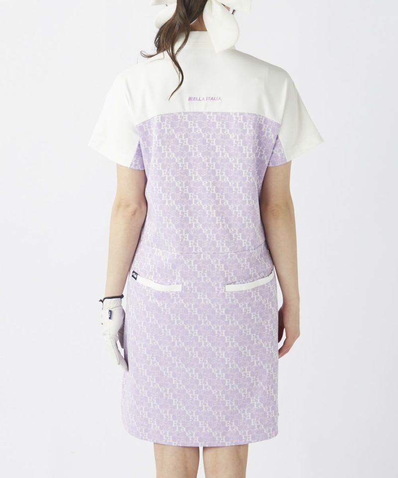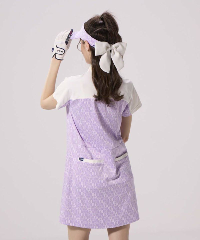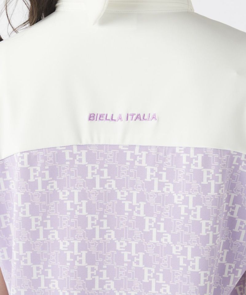 襟と袖部分はホワイトで切り替えられ、クラシックなポロシャツ風のディテールがゴルフシーンにぴったり!