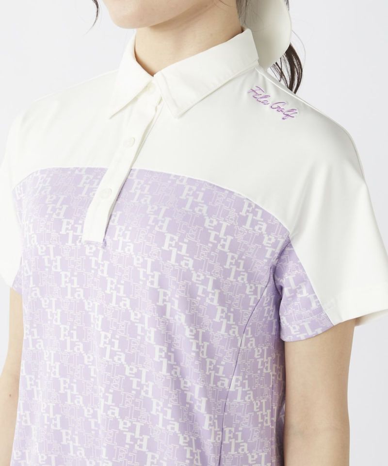 コーディネートのアクセントになるFILAをデジタルフォントで表現したタイポ柄がおしゃれです。吸汗速乾性に優れた素材を使用し、暑い季節でも爽やかにプレーを楽しめます。