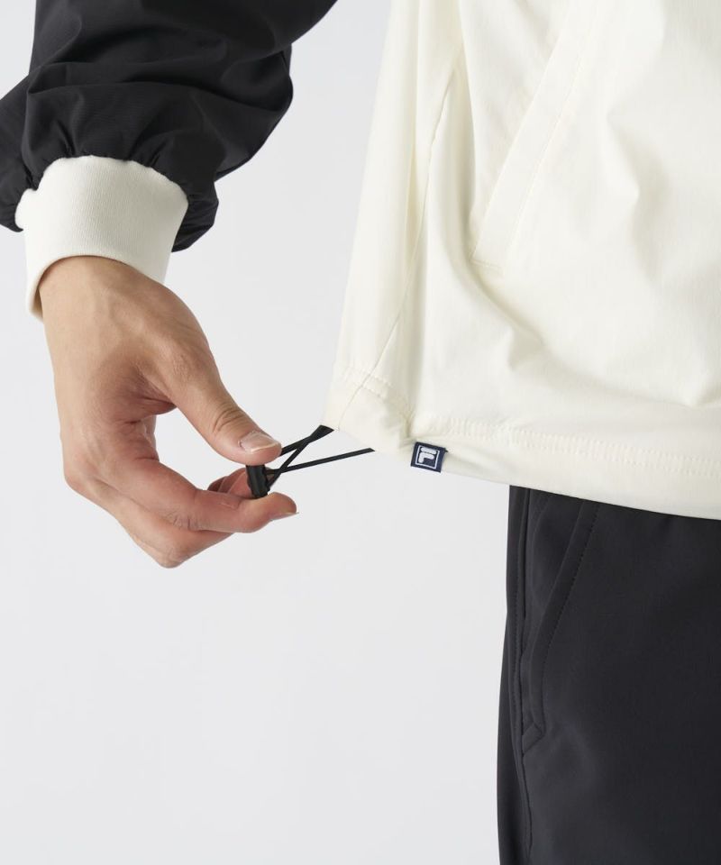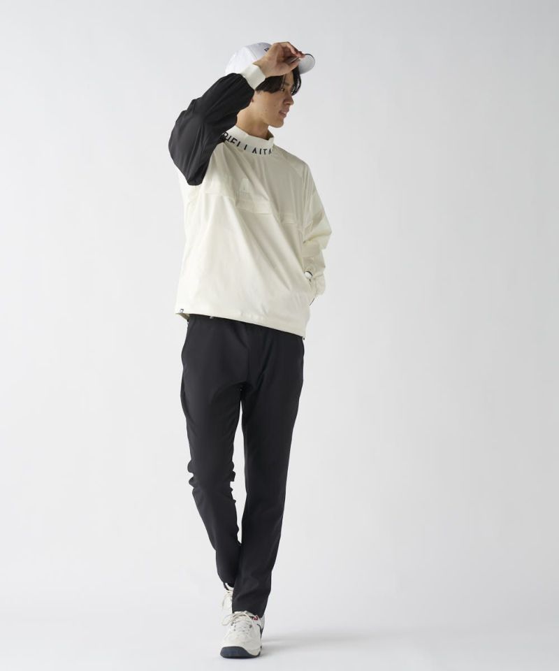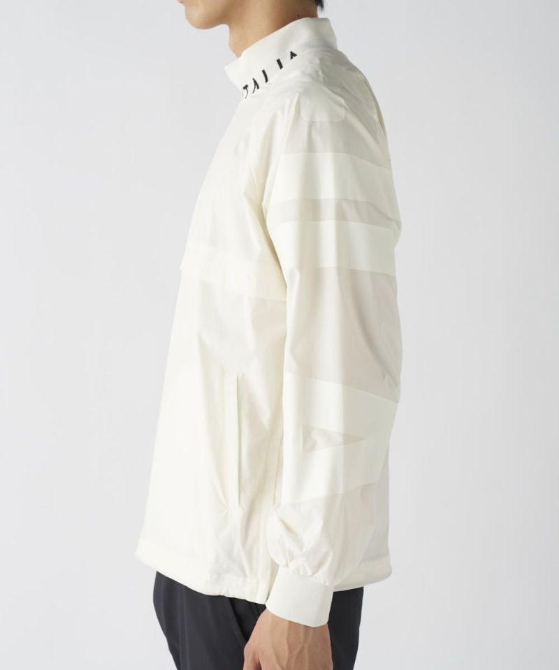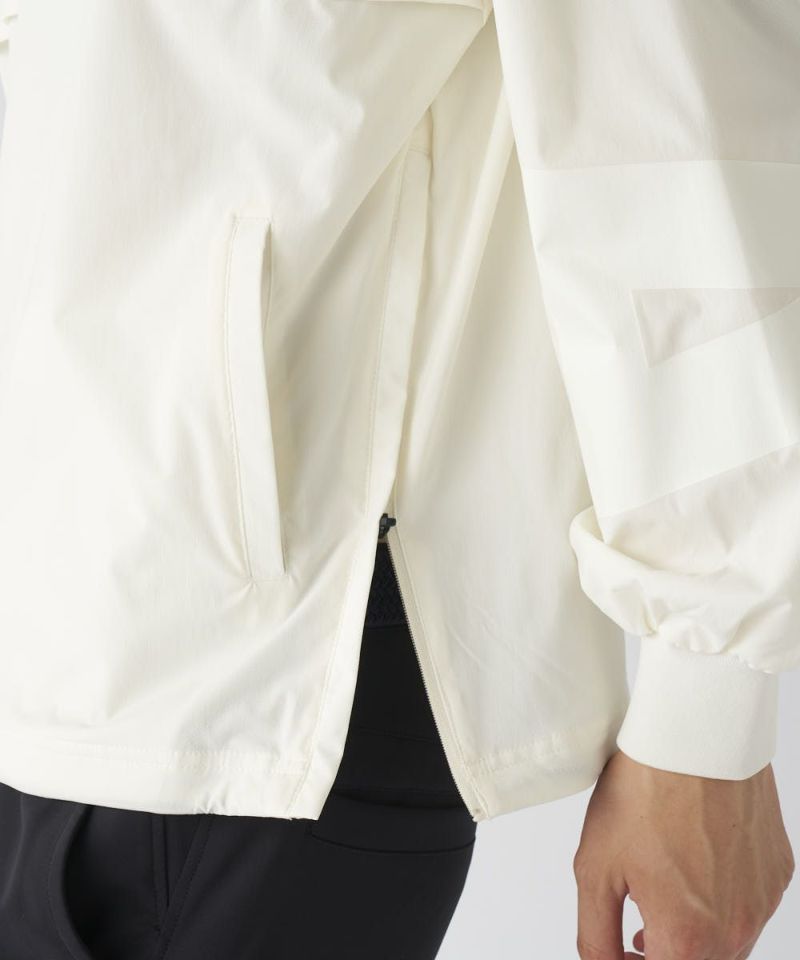 軽くて肌ざわりの良いツイル素材を使用。裏地はメッシュ仕様で軽い仕上がりになっており、着膨れせず一日中サラッと快適な着心地をキープします。高いストレッチ性がスムーズなスイングをサポートし、さらに撥水加工も施されているため、急な小雨や水滴を弾き、アクティブなプレーに集中できます。