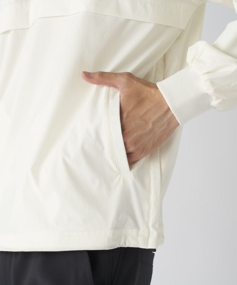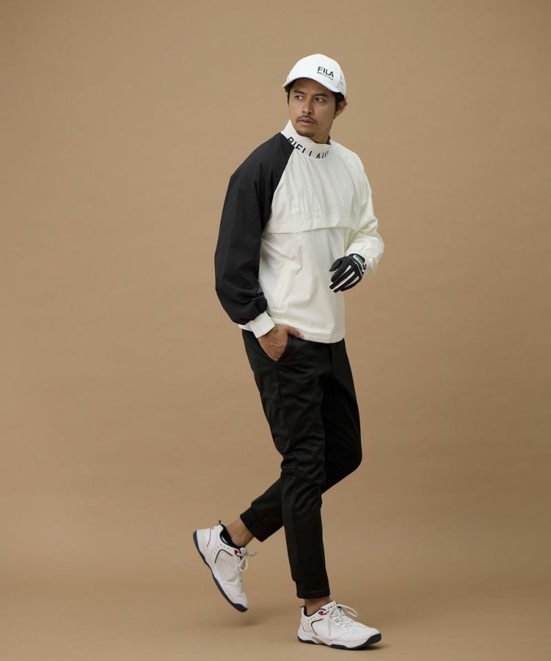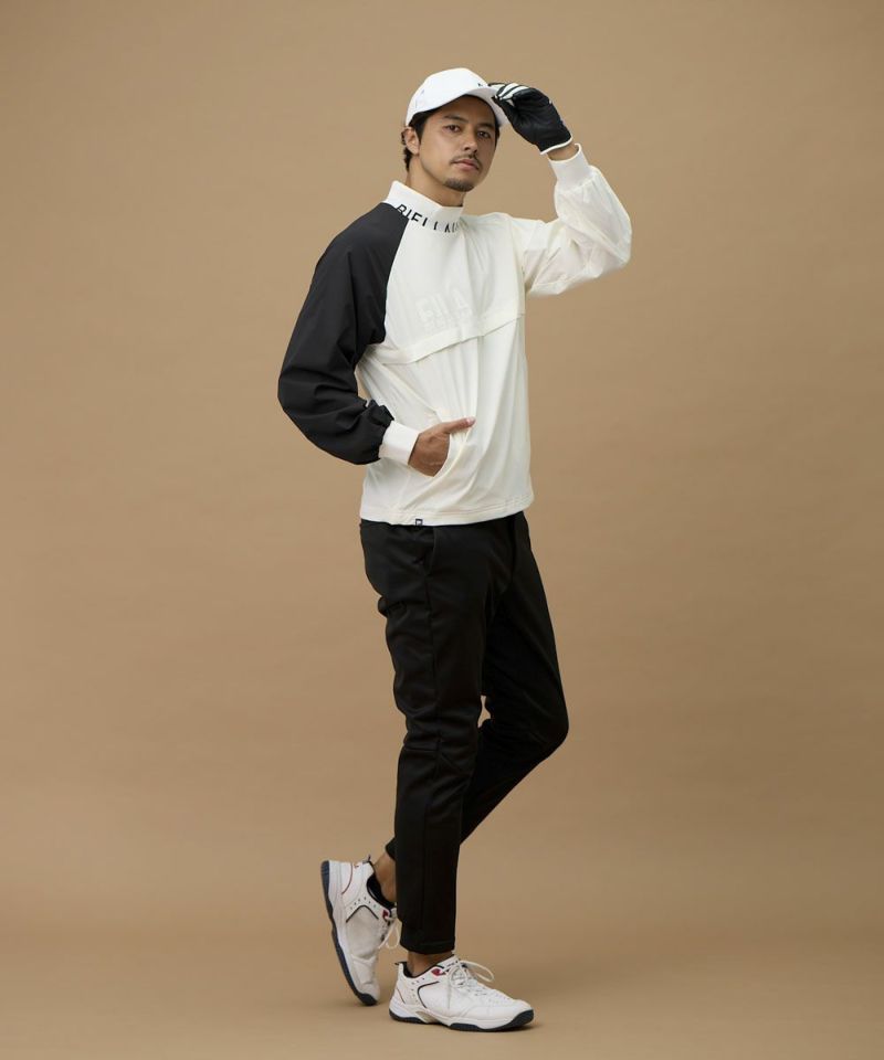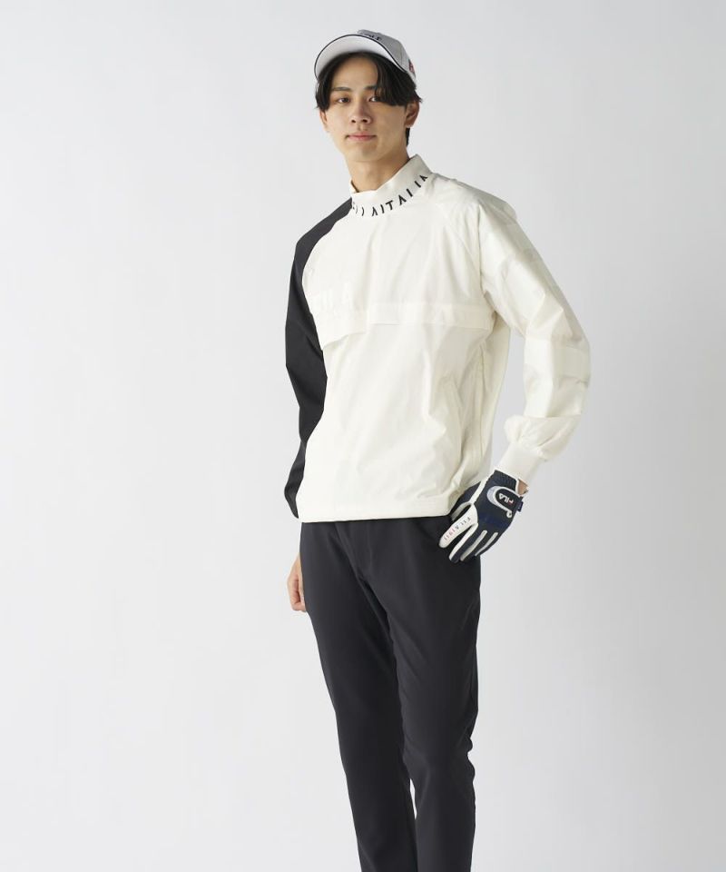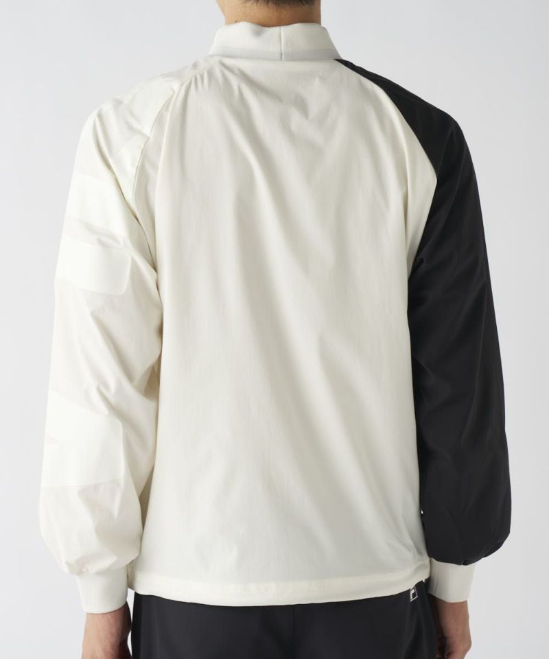 軽くて肌ざわりの良いツイル素材を使用。裏地はメッシュ仕様で軽い仕上がりになっており、着膨れせず一日中サラッと快適な着心地をキープします。高いストレッチ性がスムーズなスイングをサポートし、さらに撥水加工も施されているため、急な小雨や水滴を弾き、アクティブなプレーに集中できます。