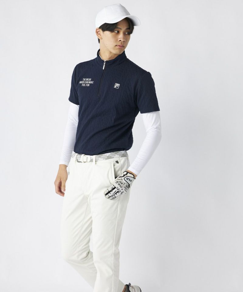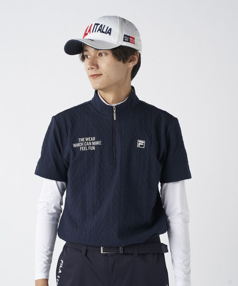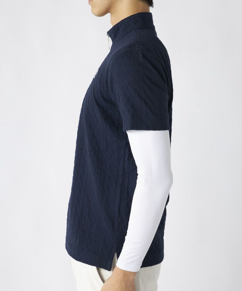 凹凸感のあるジャガード素材を使用した、ハーフジップの半袖シャツとインナーシャツのセットアイテム。