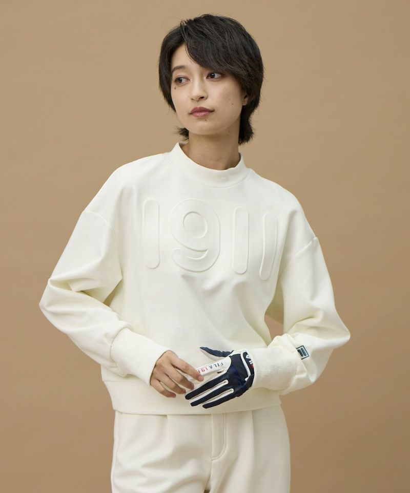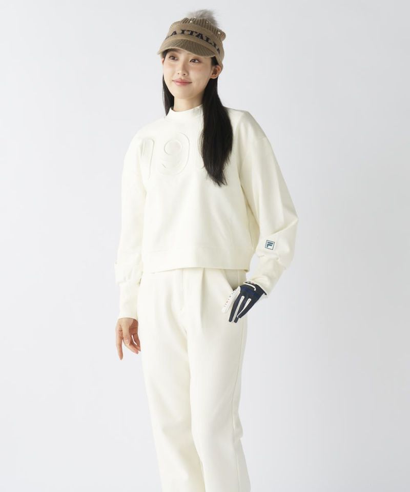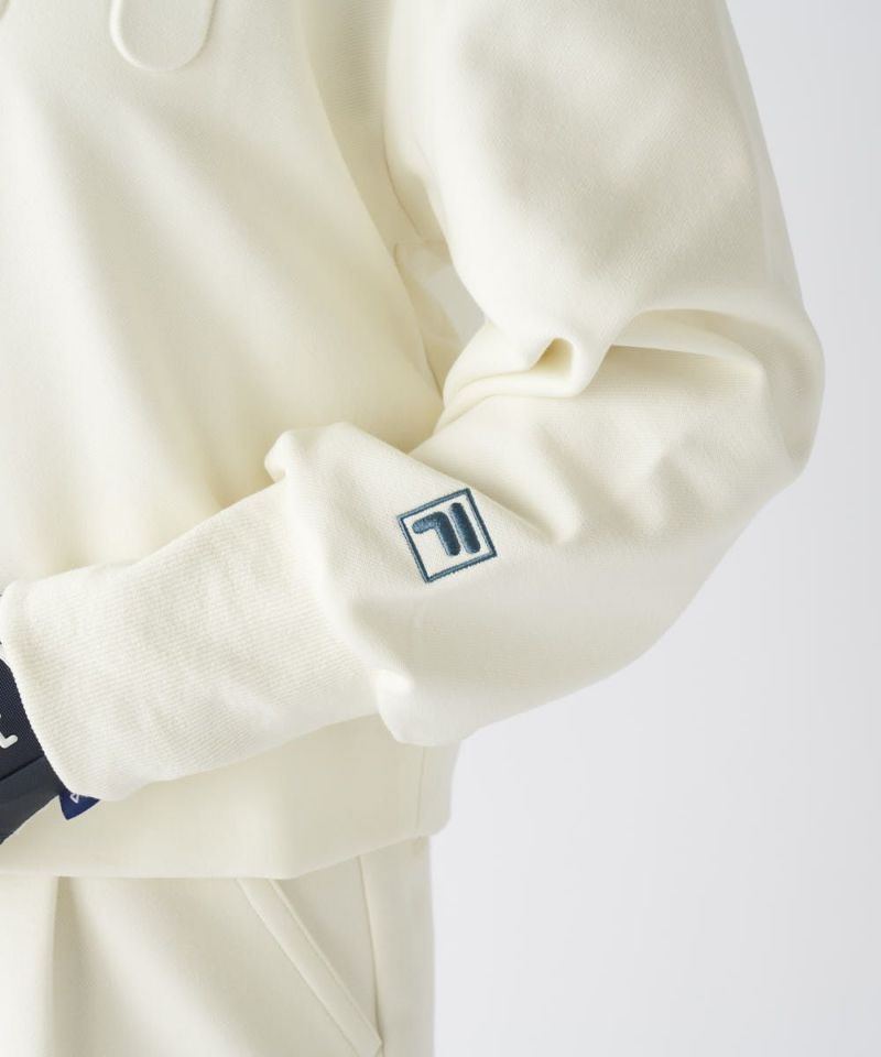 長めのリブ袖とFボックスロゴ刺繍が、FILAらしいスポーティなアクセントを加えています。カジュアルながらも品のある、洗練された大人のスタイルです。