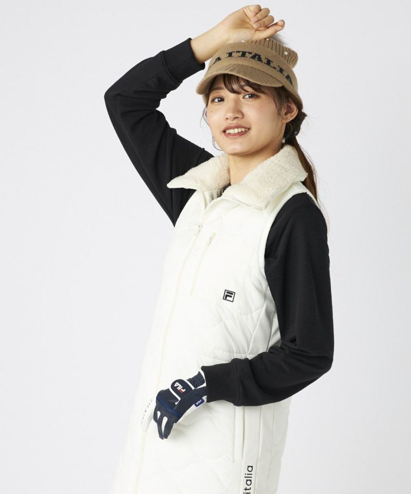 ストレッチタフタに中綿を施したキルト素材を使用。撥水加工、保温、蓄熱、ストレッチといった多機能性を備え、秋冬のラウンドを全天候で快適にサポートします。特に背中部分には蓄熱裏地を採用、また脇はストレッチ性の高いボンディング素材で切り替えることで、暖かさとスイング時の動きやすさを徹底的に追求しています。