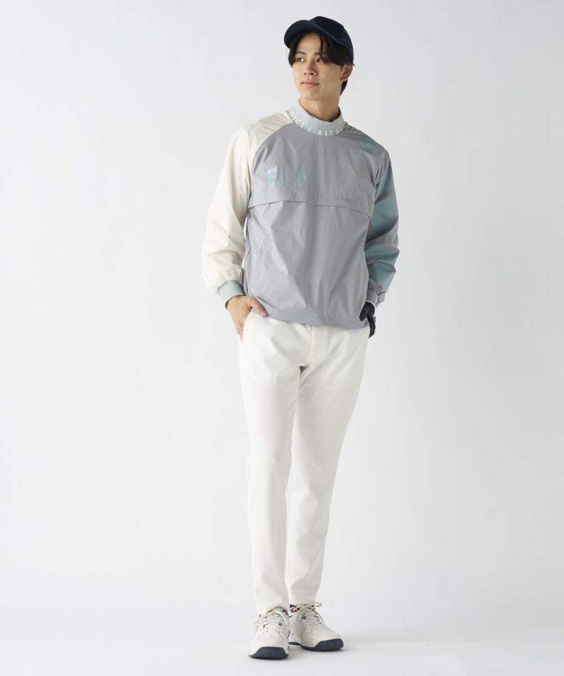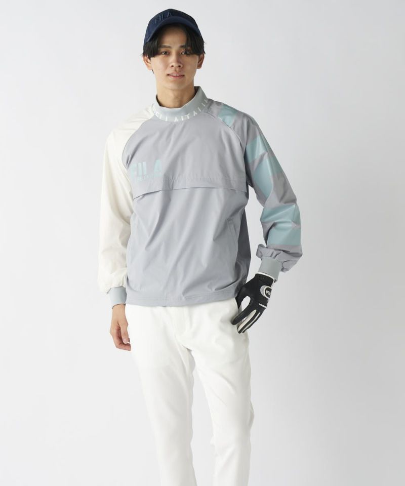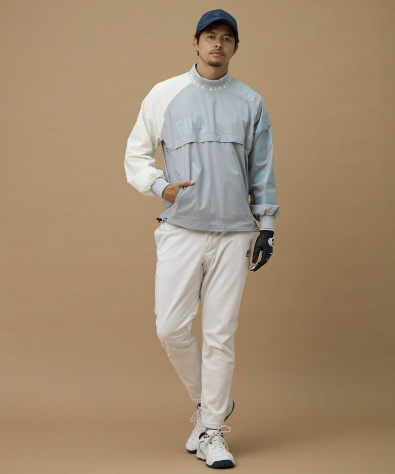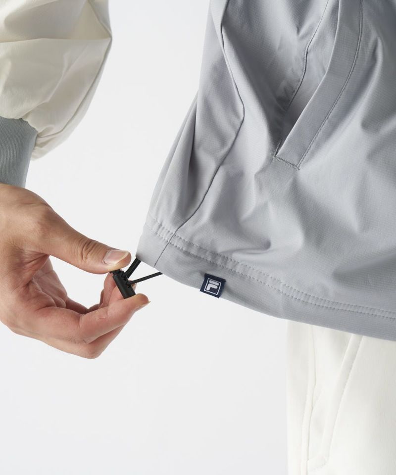軽くて肌ざわりの良いツイル素材を使用。裏地はメッシュ仕様で軽い仕上がりになっており、着膨れせず一日中サラッと快適な着心地をキープします。高いストレッチ性がスムーズなスイングをサポートし、さらに撥水加工も施されているため、急な小雨や水滴を弾き、アクティブなプレーに集中できます。