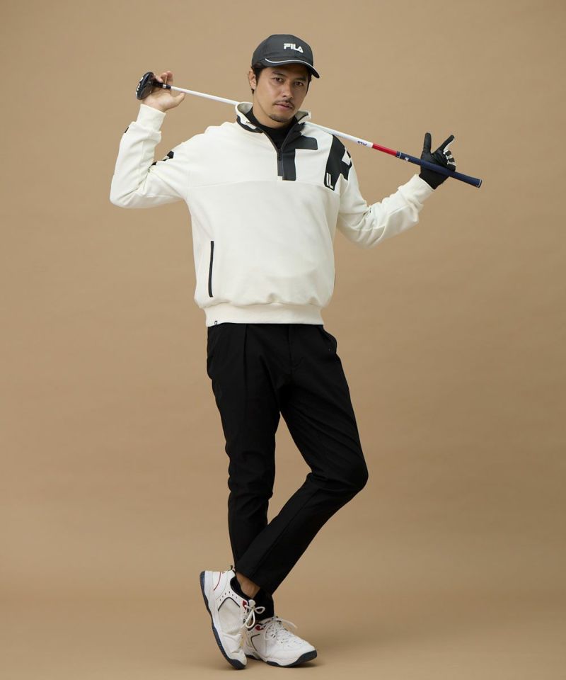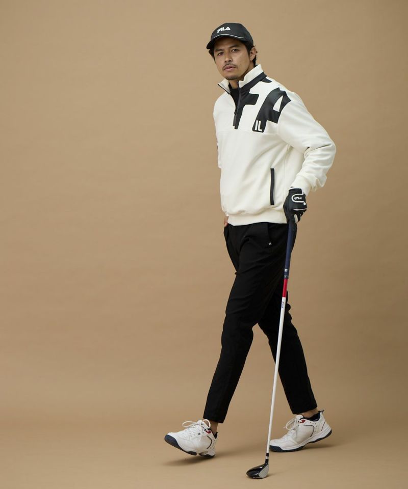 ニットツイルボンディングリブという特殊な素材を採用。ニットのような上品な見た目と、風を通しにくいボンディングの保温性を兼ね備えています。さらに抜群のストレッチ性があり、厚着になりがちな季節も軽やかなスイングをサポートします。