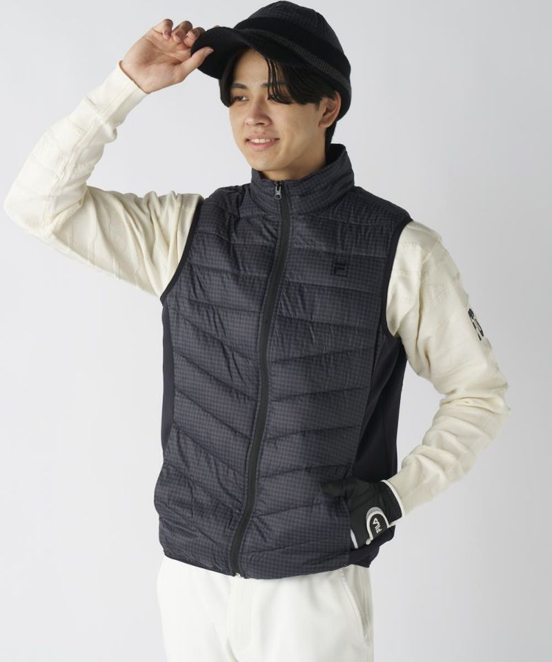中綿に天然ダウンと高機能ファイバーダウンをブレンドしたハイブリッド中綿を採用。軽量でありながら高い保温力で、体の中心部を効率よく暖めます。撥水加工により、霧や小雨にも対応し、濡れにくく乾きやすいのでお手入れも容易です。脇部分にはストレッチ素材を使用し、腕の可動域を最大化し、スイングを妨げません。