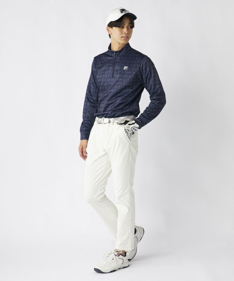 気温に合わせてジップの開閉で温度調整がしやすく、冬のゴルフに最適です。一枚で主役になるデザイン性があり、同系色のパンツと合わせればスマートなセットアップ風スタイルが完成。機能的でありながら、自信を持てるファッション性を兼ね備えたアイテムです。