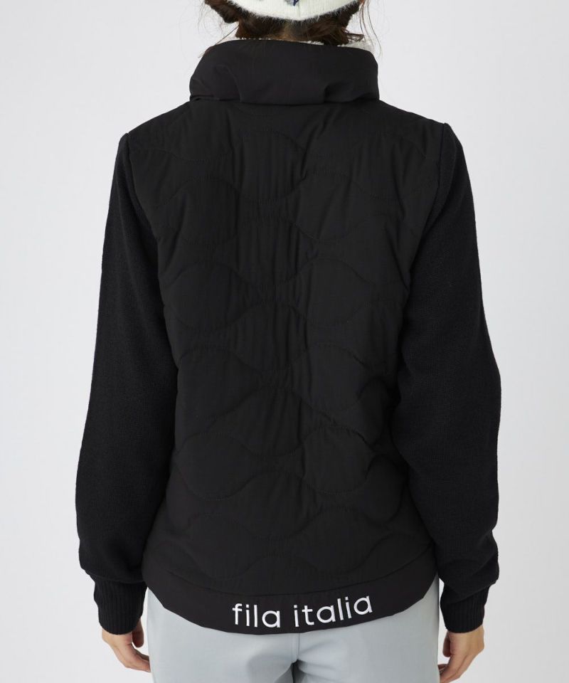 スポーティなタフタと上品なニットの異素材切替が、都会的で洗練された印象を与えるFILAらしいデザインです。計算されたコンパクトなシルエットは着膨れせず、身体のラインをスマートに見せます。ミニマルなディテールと素材のコントラストが、大人のアクティブスタイルにクールなアクセントを添えます。