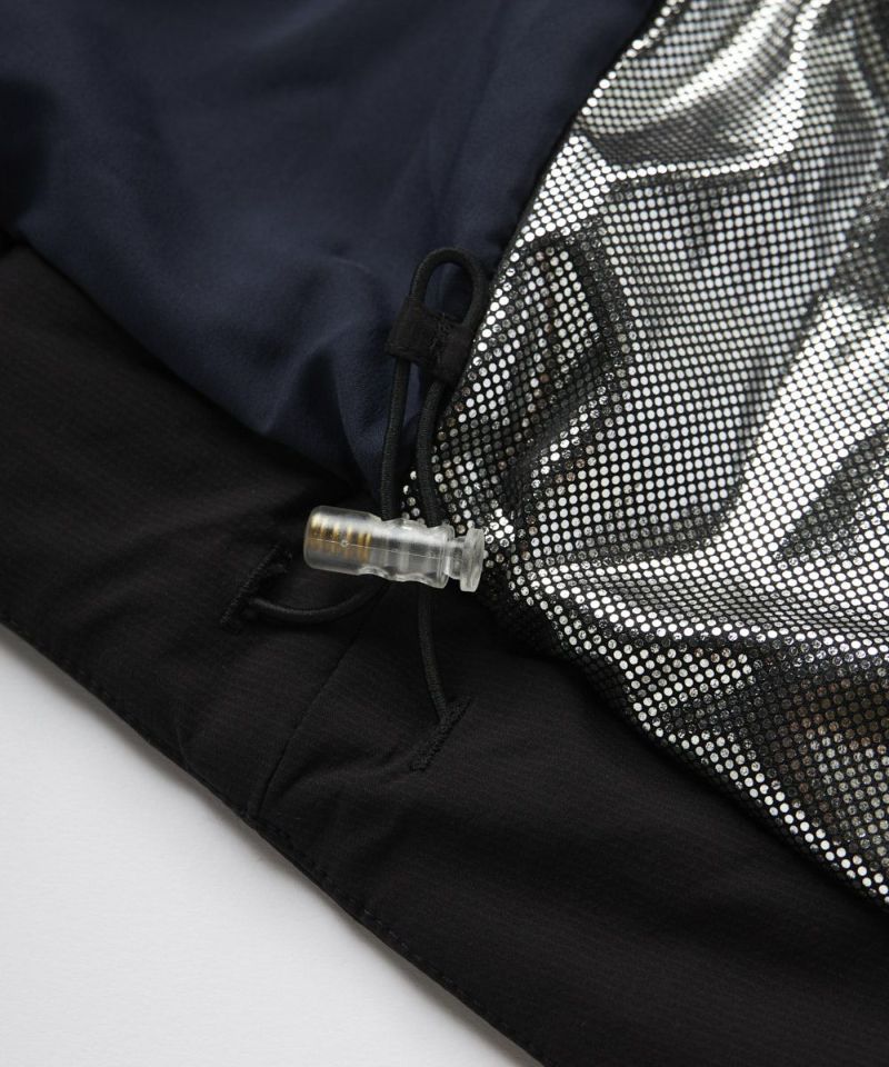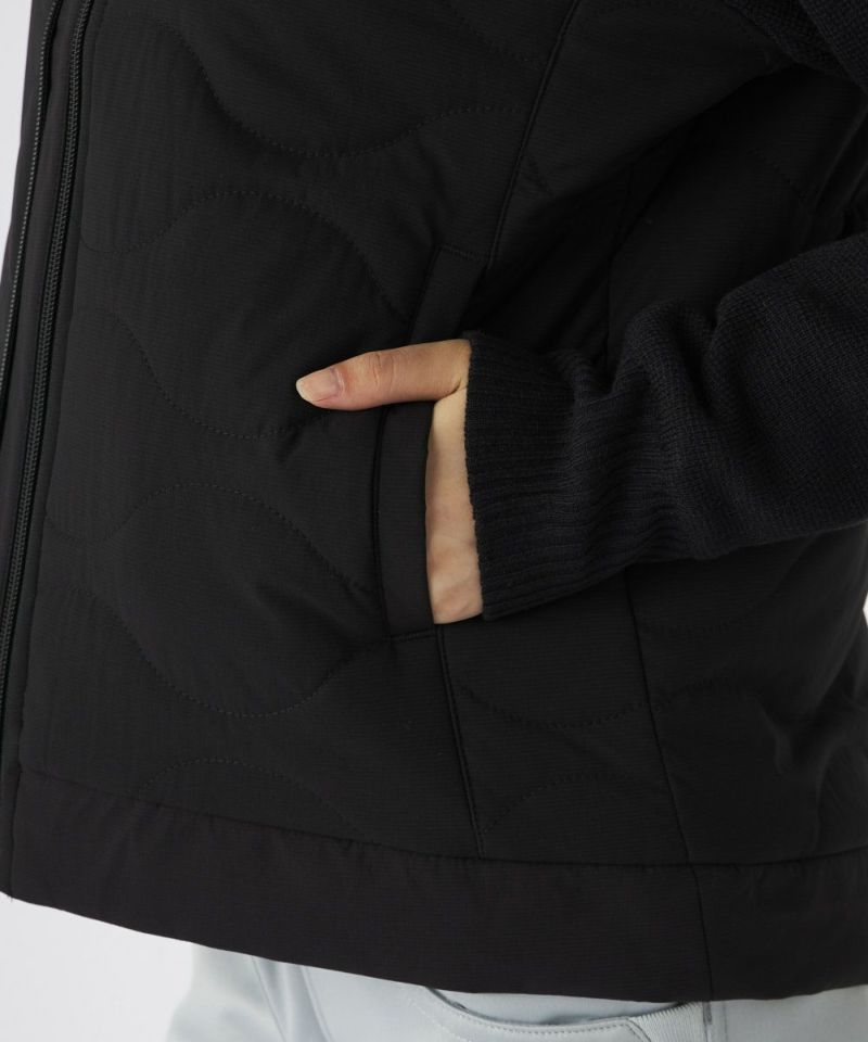 身頃には中綿入りストレッチタフタ、袖と脇にはニット素材を組み合わせた高機能ハイブリッド構造。身頃は優れた保温性で暖かさをキープしながら、袖のニットが驚くほどのストレッチ性を発揮し、ダイナミックなスイングを妨げません。軽やかな着心地と暖かさで、最高のパフォーマンスを引き出す、機能的な一枚です。
