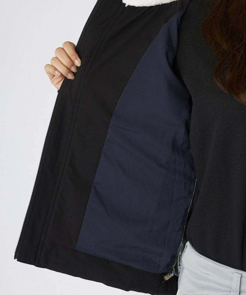 【身頃表地】ポリエステル:100% 【袖】アクリル:85% 毛:15% 【中わた】ポリエステル:100% 【裏地】ポリエステル:100% 【衿裏】ポリエステル:100%