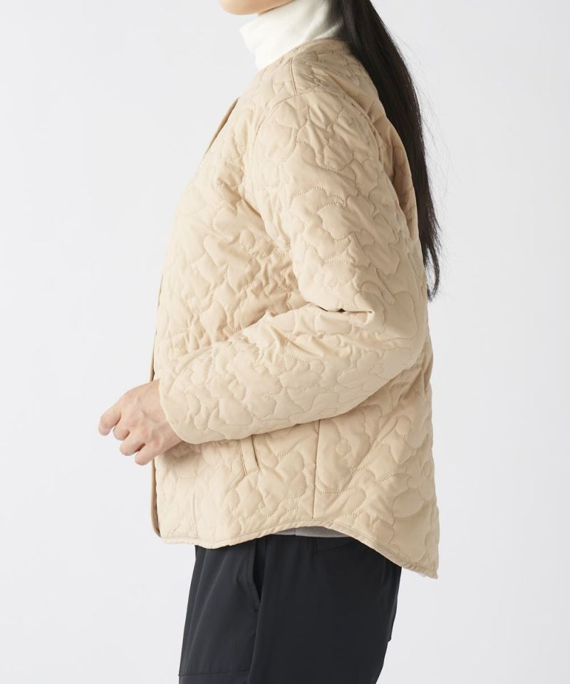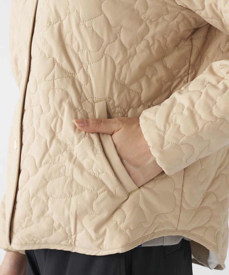 風を防ぎ、暖かさを逃さない。タイポロゴが映える、洗練キルトジャケット。