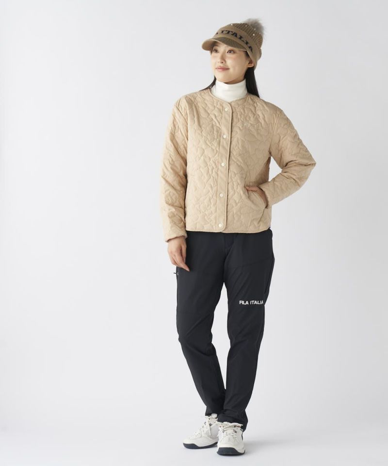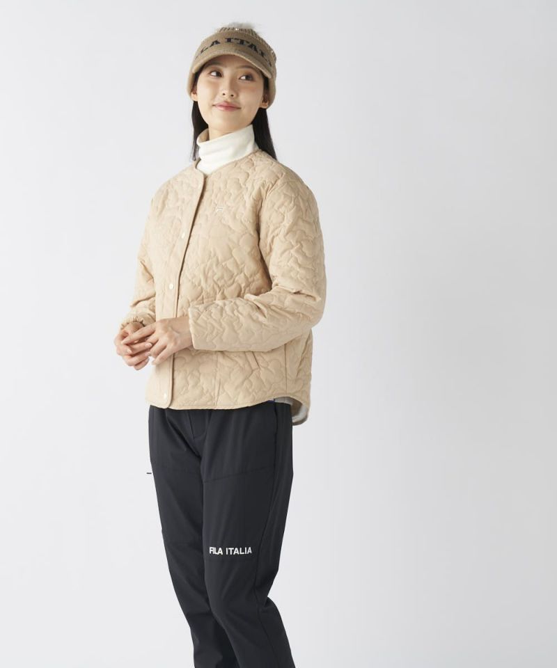 高周波キルトによって表現されたタイポロゴ柄が、シンプルながらもFILAらしい遊び心と都会的なセンスを醸し出します。スポーティすぎない上品なデザインは、大人の女性のアクティブスタイルに最適。コンパクトかつ計算されたシルエットは、着膨れしにくく、スタイルアップ効果を発揮し、洗練された印象を与えます。