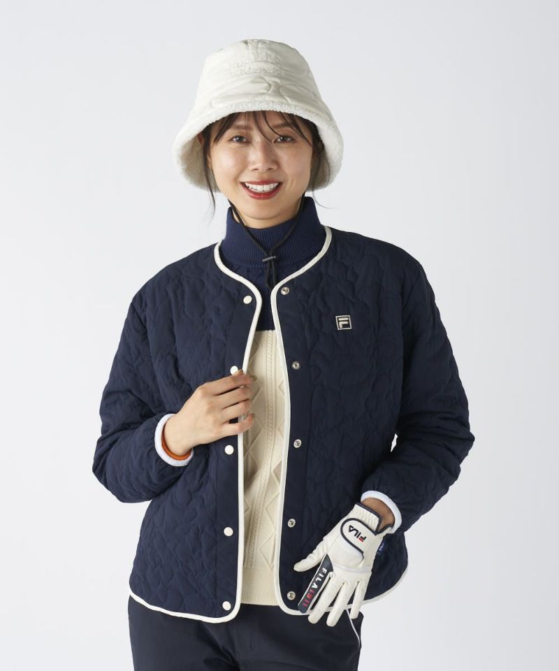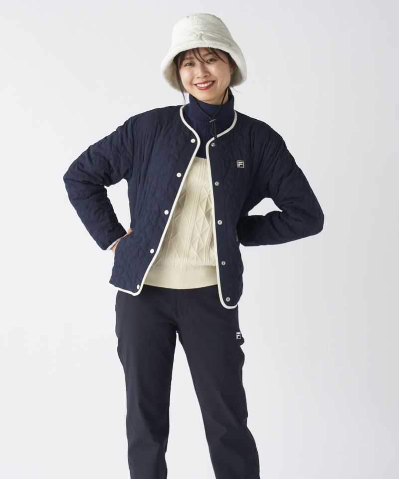 高周波キルトによって表現されたタイポロゴ柄が、シンプルながらもFILAらしい遊び心と都会的なセンスを醸し出します。スポーティすぎない上品なデザインは、大人の女性のアクティブスタイルに最適。コンパクトかつ計算されたシルエットは、着膨れしにくく、スタイルアップ効果を発揮し、洗練された印象を与えます。