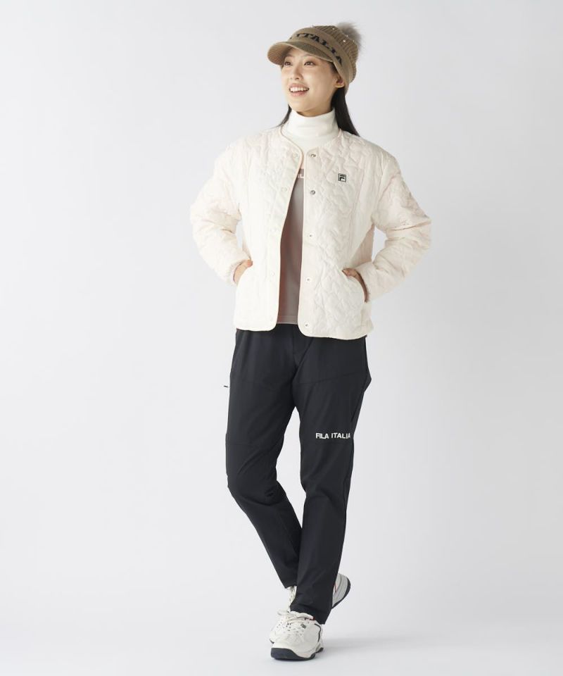 高周波キルトによって表現されたタイポロゴ柄が、シンプルながらもFILAらしい遊び心と都会的なセンスを醸し出します。スポーティすぎない上品なデザインは、大人の女性のアクティブスタイルに最適。コンパクトかつ計算されたシルエットは、着膨れしにくく、スタイルアップ効果を発揮し、洗練された印象を与えます。