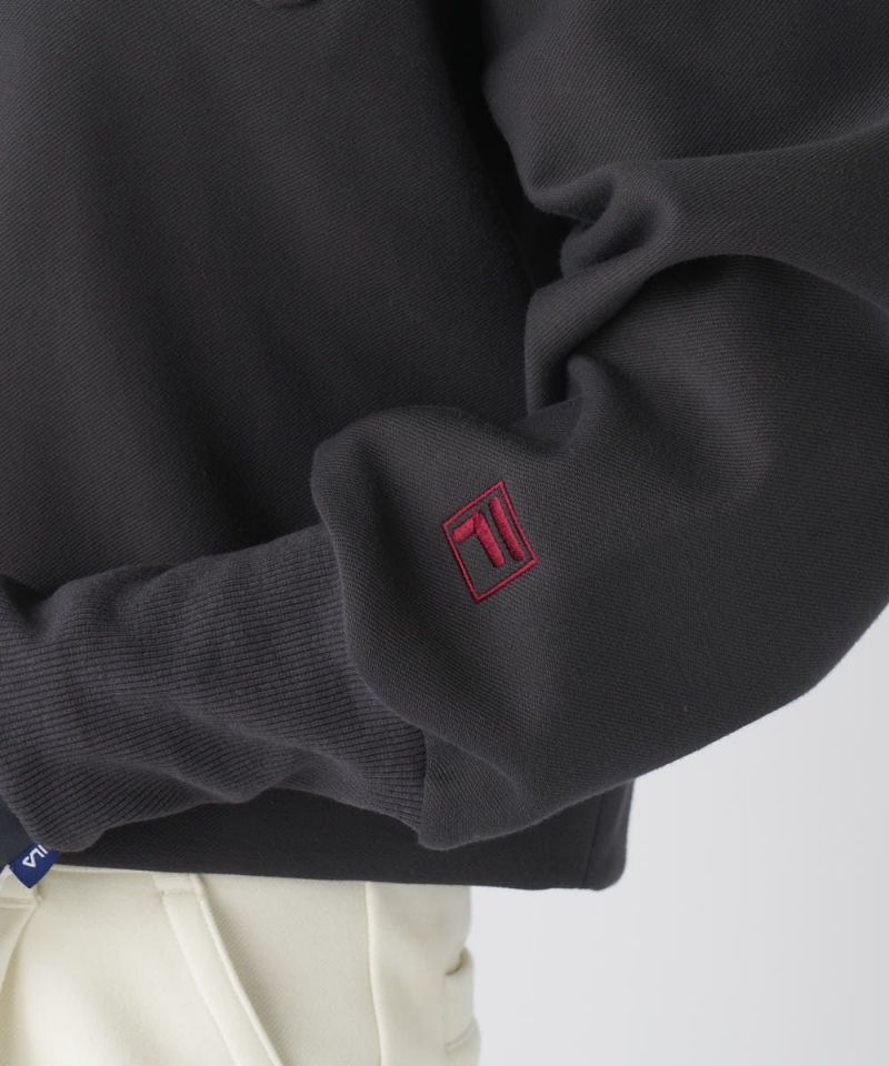 長めのリブ袖とFボックスロゴ刺繍が、FILAらしいスポーティなアクセントを加えています。カジュアルながらも品のある、洗練された大人のスタイルです。