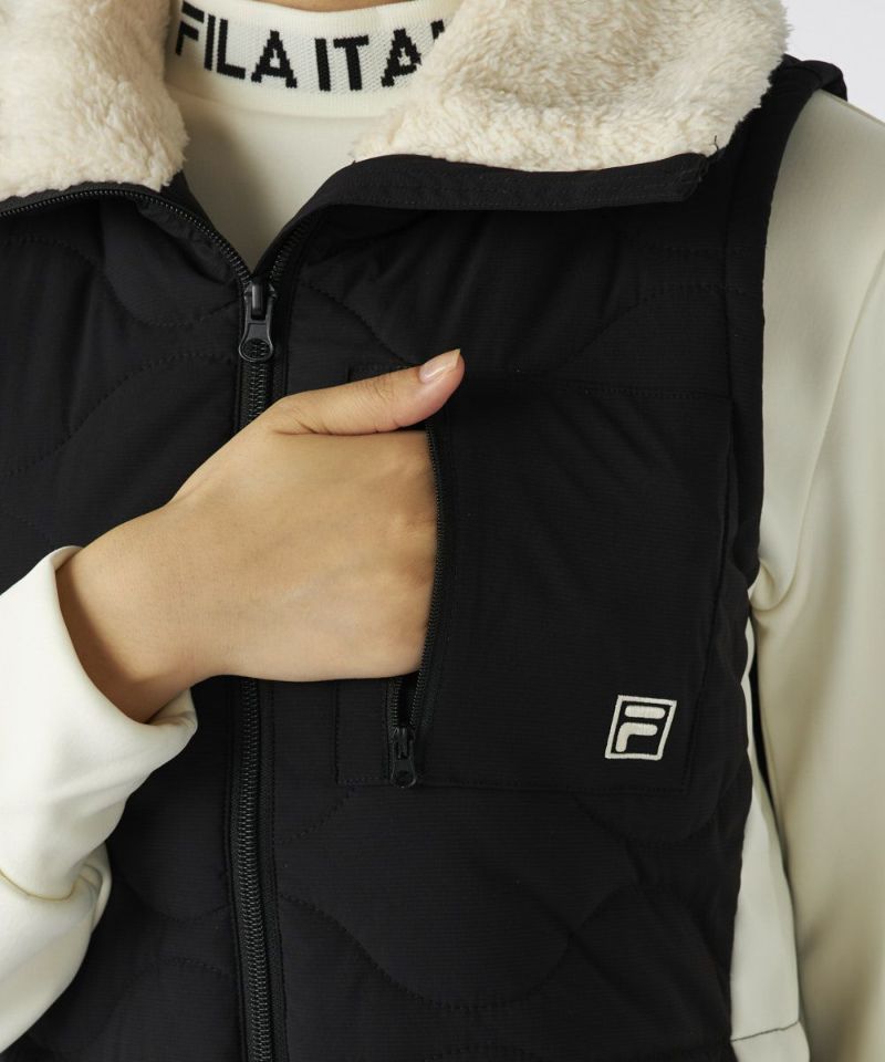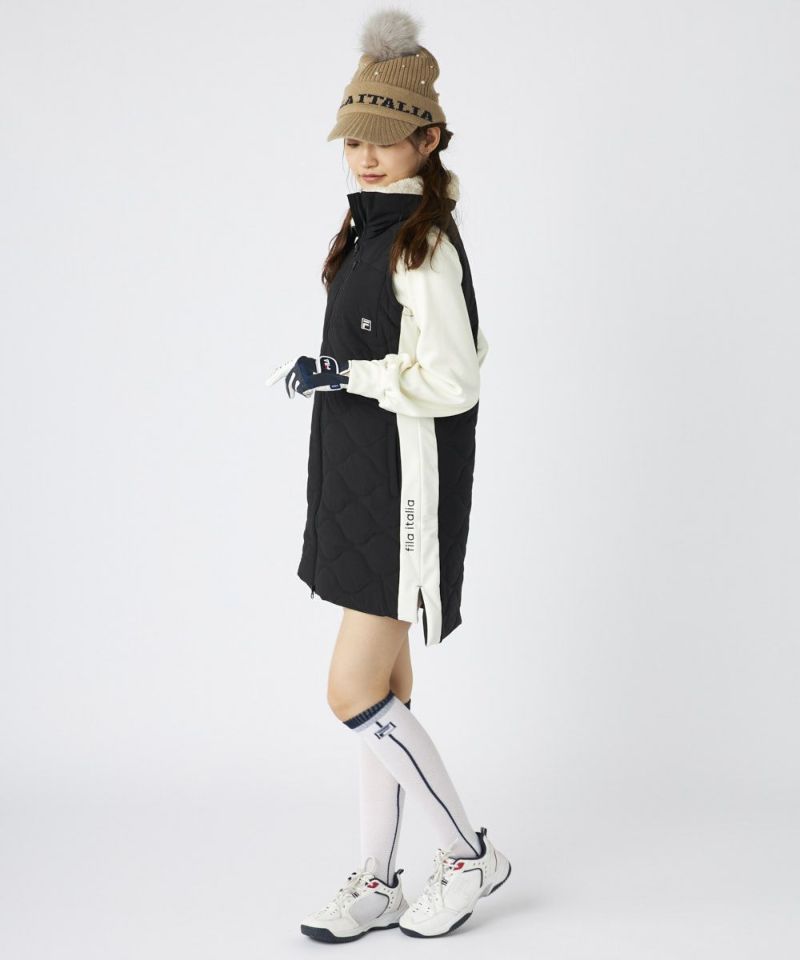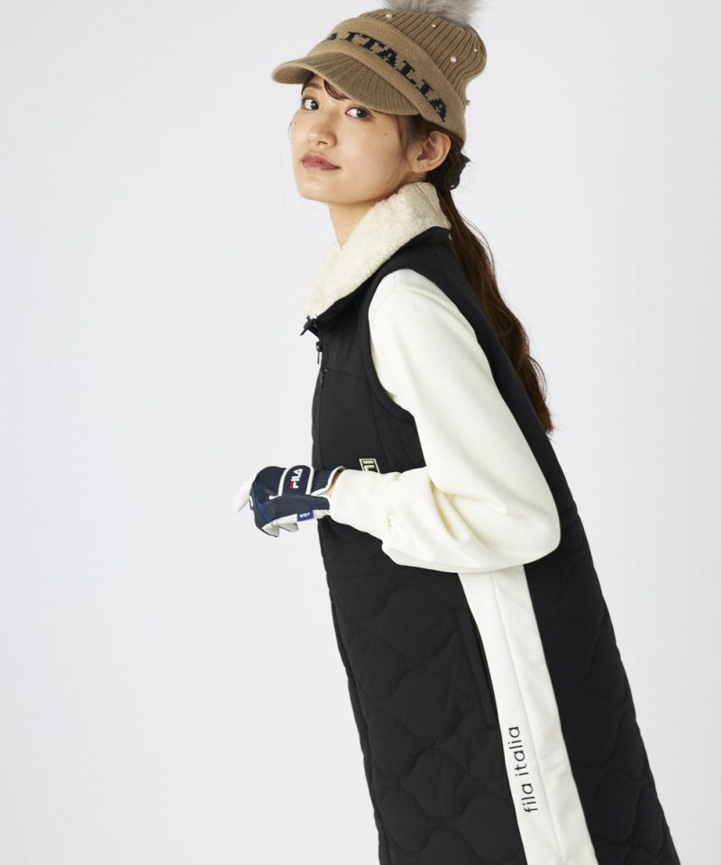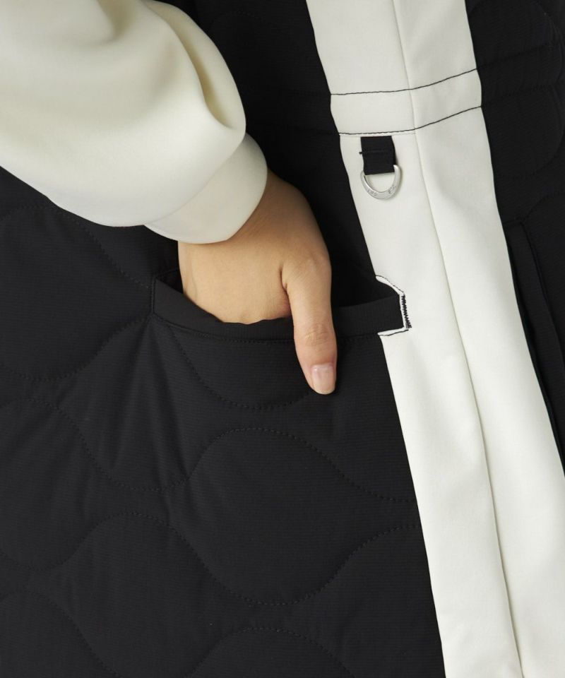 ストレッチタフタに中綿を施したキルト素材を使用。撥水加工、保温、蓄熱、ストレッチといった多機能性を備え、秋冬のラウンドを全天候で快適にサポートします。特に背中部分には蓄熱裏地を採用、また脇はストレッチ性の高いボンディング素材で切り替えることで、暖かさとスイング時の動きやすさを徹底的に追求しています。