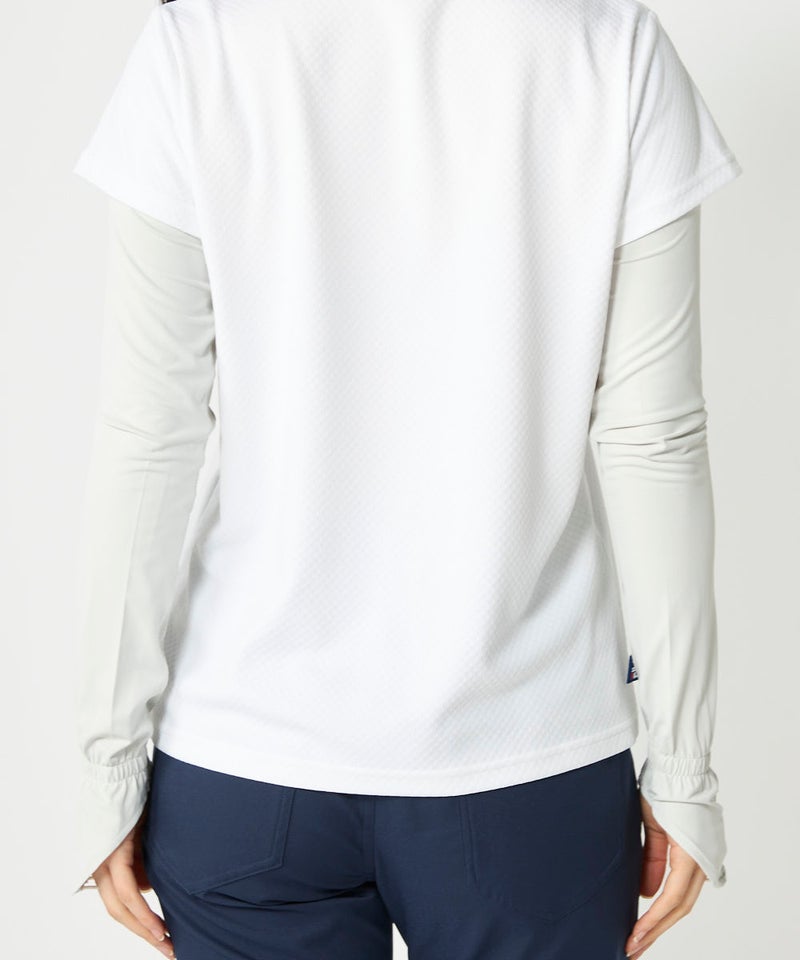半袖ポロシャツやモックネックシャツとのレイヤードに最適です。日焼け対策としてはもちろん、コーディネートのアクセントとしても活躍。ゴルフシーンだけでなく、テニスやランニングなど、屋外でのあらゆるアクティブシーンに自信を持って取り入れられます。