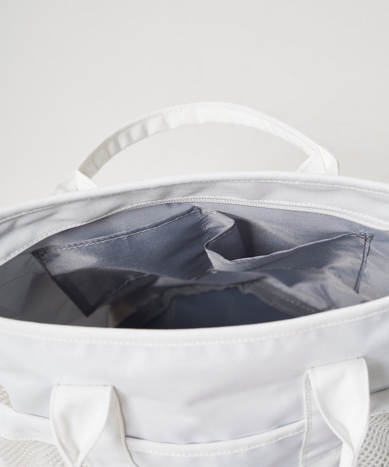 ゴルフカートに置いた際も美しく映える、コンパクトで洗練されたフォルム。 スッキリとした見た目ながら、ドリンクやボール、ポーチなどの必需品を機能的に整理できる収納力を備えています。 細部にまでこだわったディテールが、FILAらしい品の良さを漂わせます。