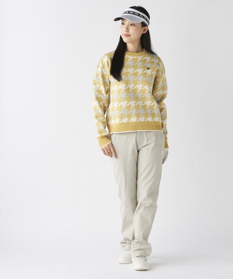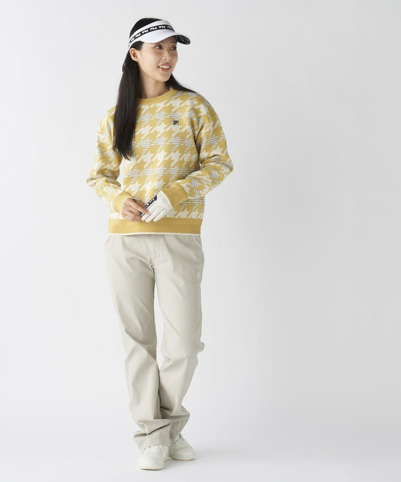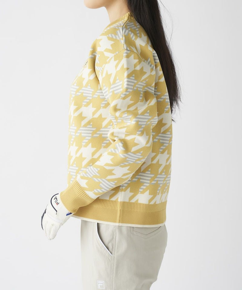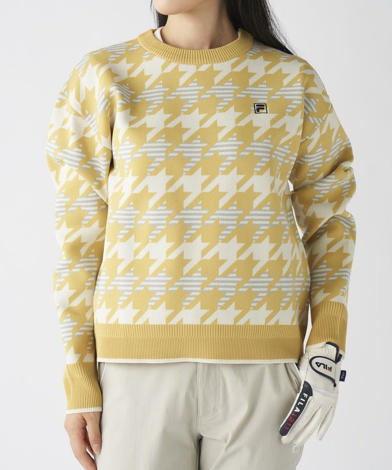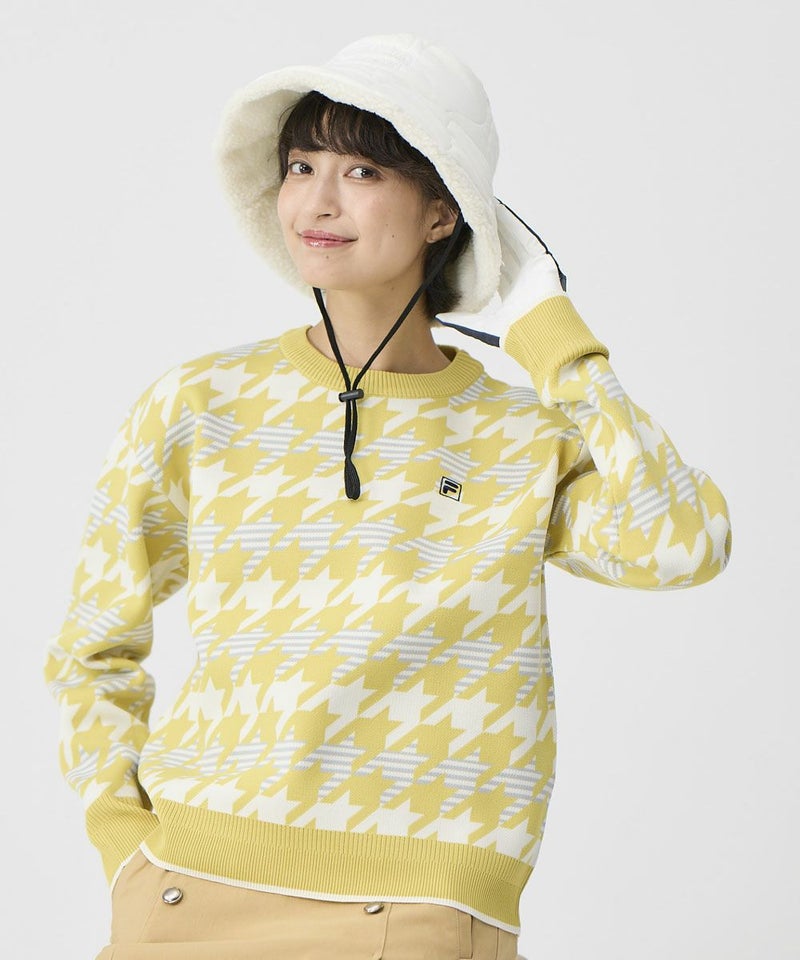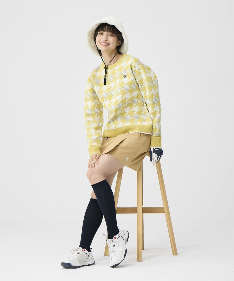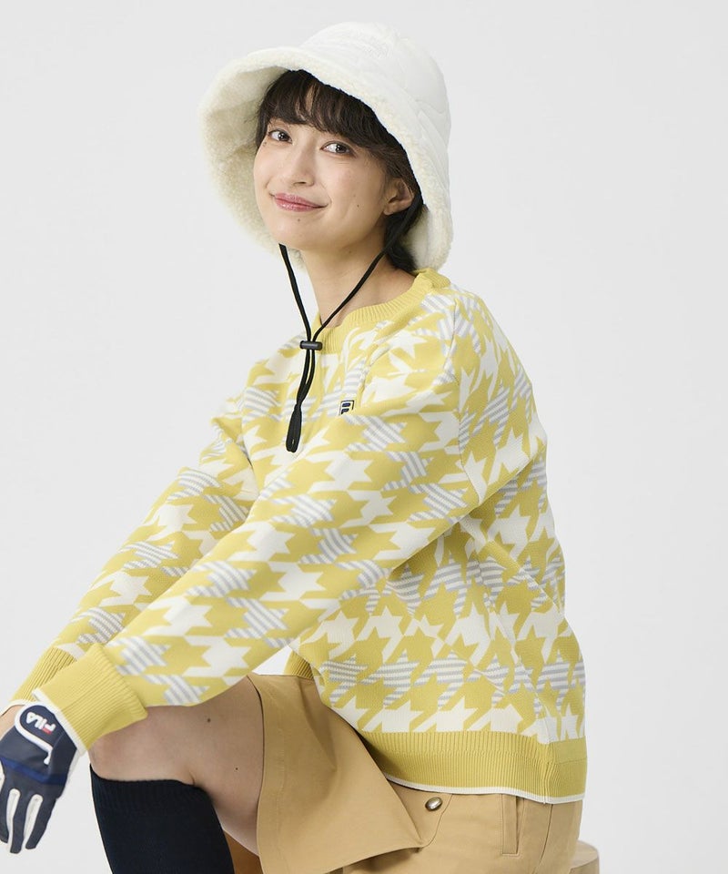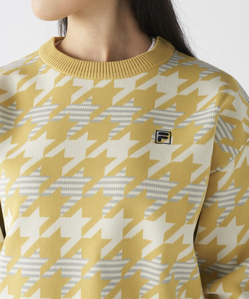 アーガイル、千鳥格子、ストライプの3パターンを展開。大胆な柄ながらもFILAらしい上品さを感じる仕上がりです。リブ仕様の袖口と裾が冷気を防ぎ、シルエットにメリハリをプラス。オーバーサイズ気味のドロップショルダーで今っぽい抜け感を演出します。