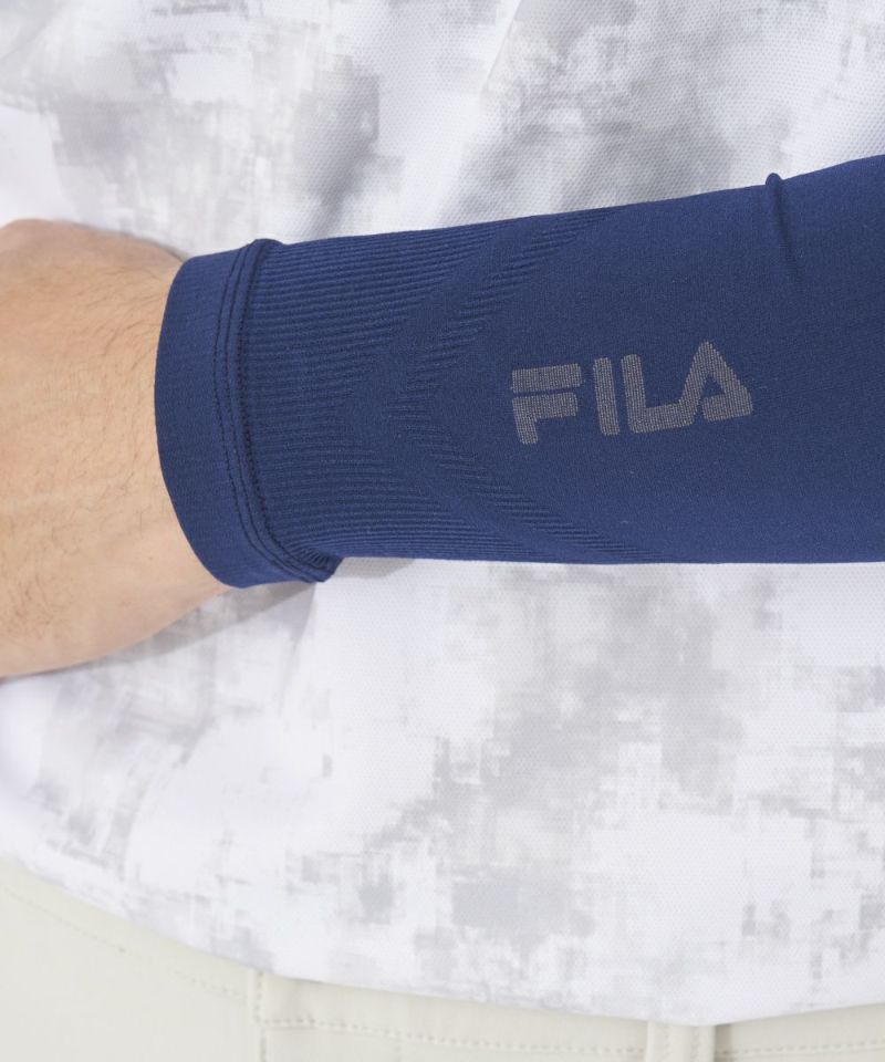 接触冷感機能のあるUVアームカバー。手首部分のさりげないロゴがポイントです。シームレス使用でツッパリ感を軽減させています。●機能性・UVカット・ストレッチ・接触冷感