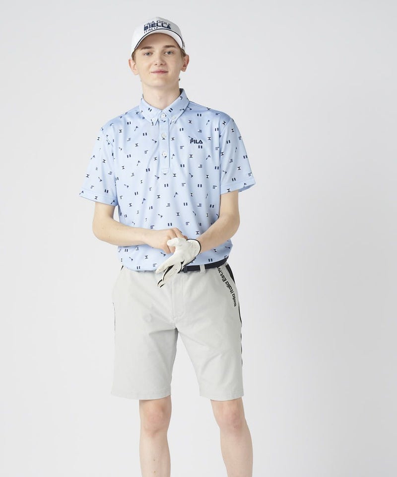 フラッグなど、ゴルフにちなんだデザインがちりばめられたおしゃれな半袖シャツ。