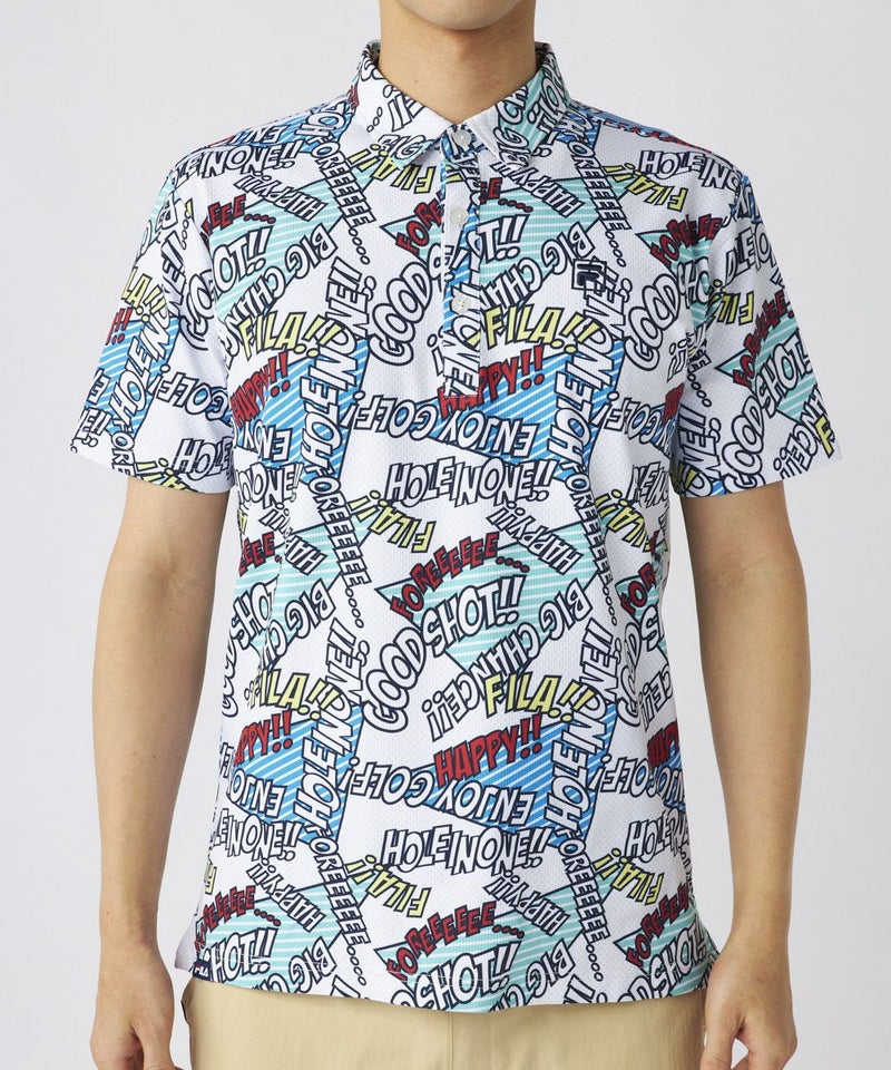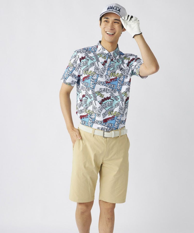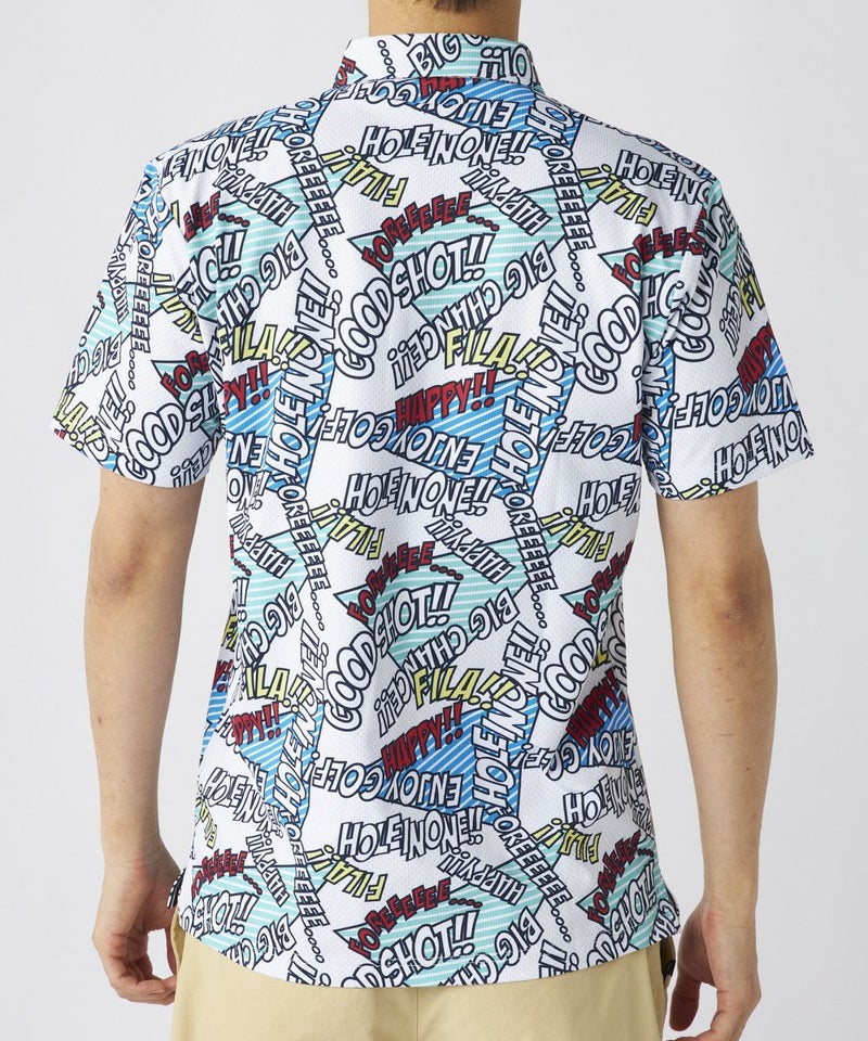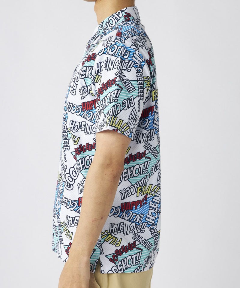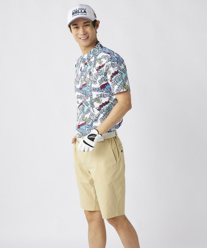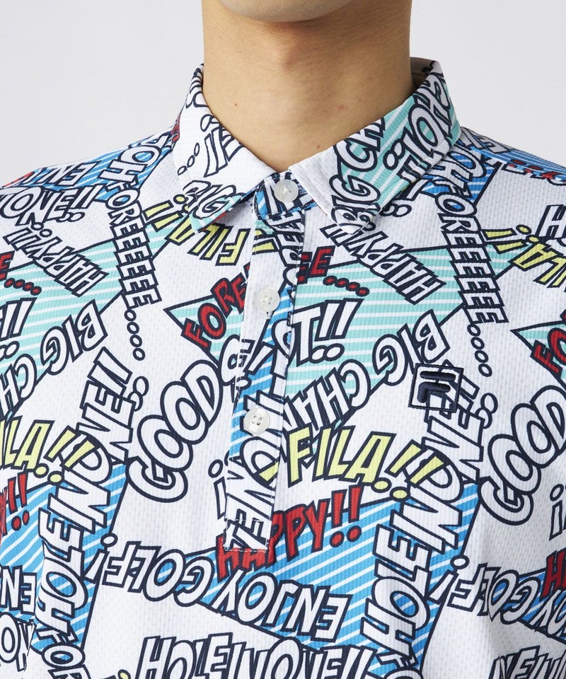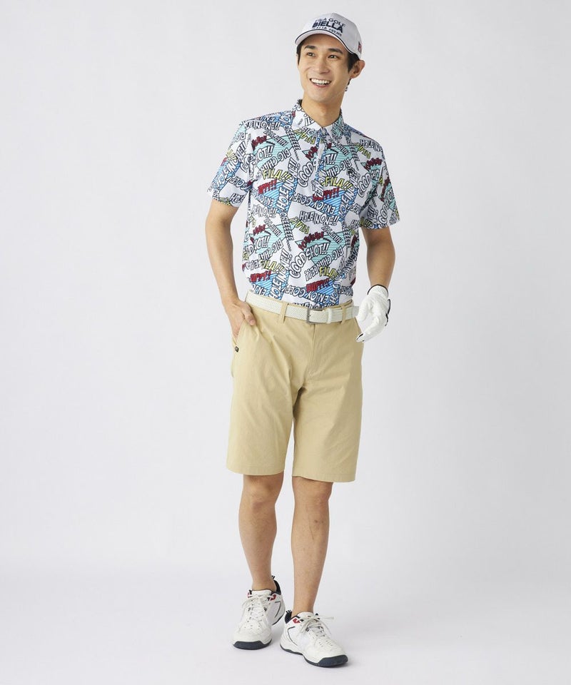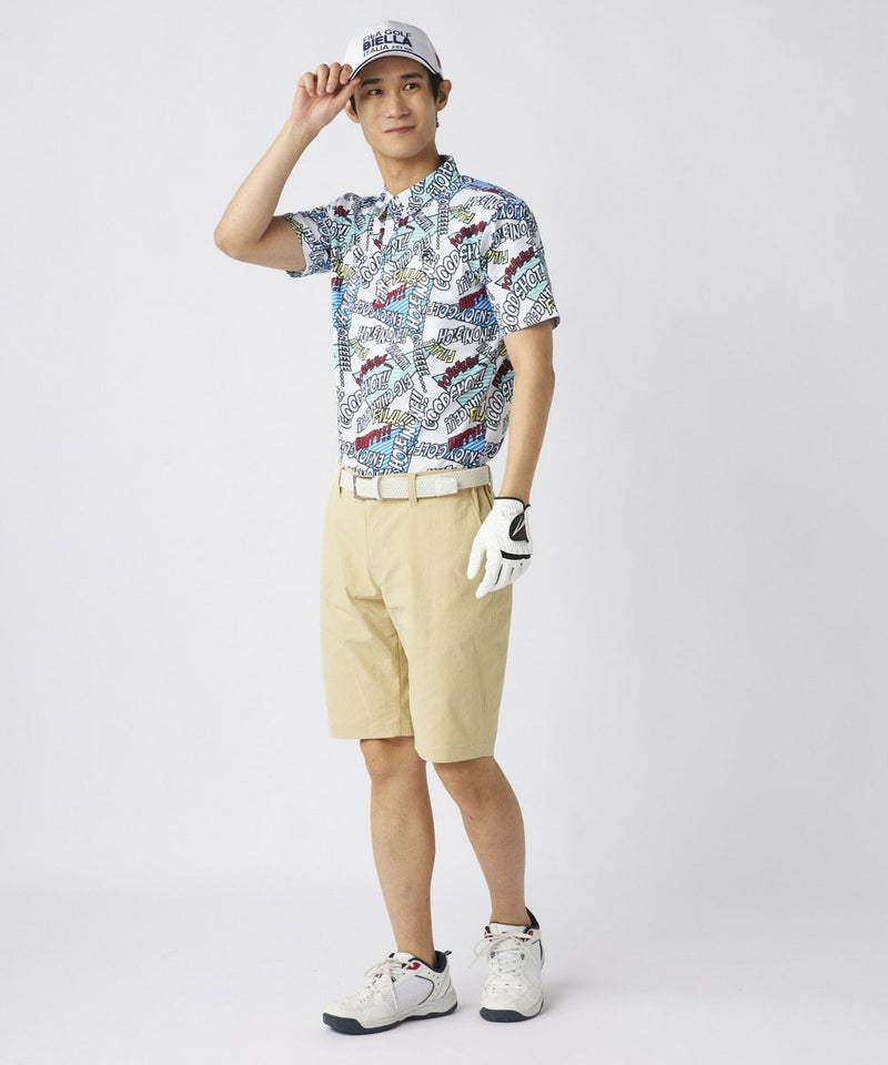 コミック調のデザインが特徴のポップなゴルフシャツです。配色もオシャレなので、ベーシックなボトムスに合わせるだけでおしゃれな印象に!