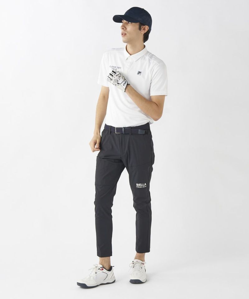 撥水コーティング加工で雨をしっかりガード。天候が変わりやすいゴルフシーンでも安心。裾上げいらずの9分丈仕様に加え、細身のテーパドシルエット。すっきりとしたシルエットで、スタイルアップも叶います。