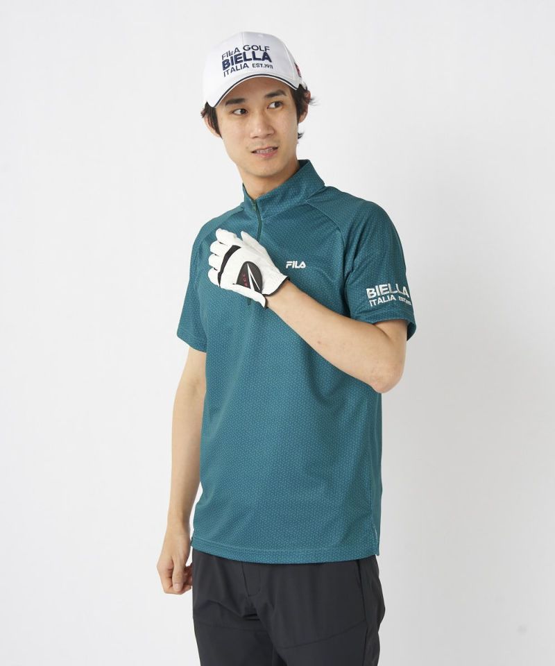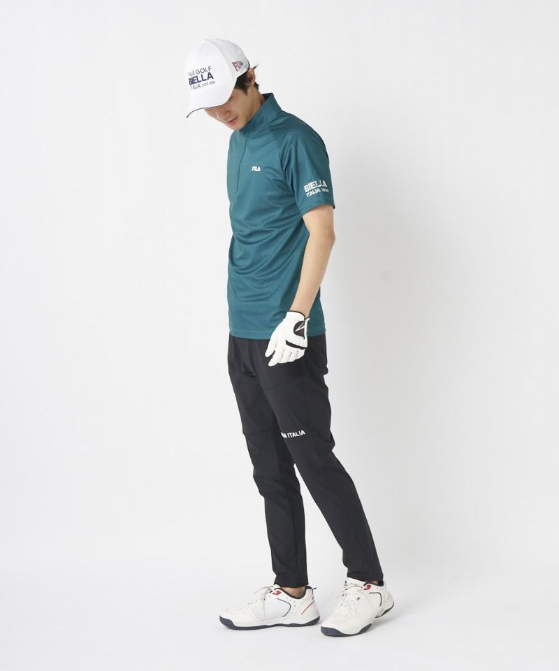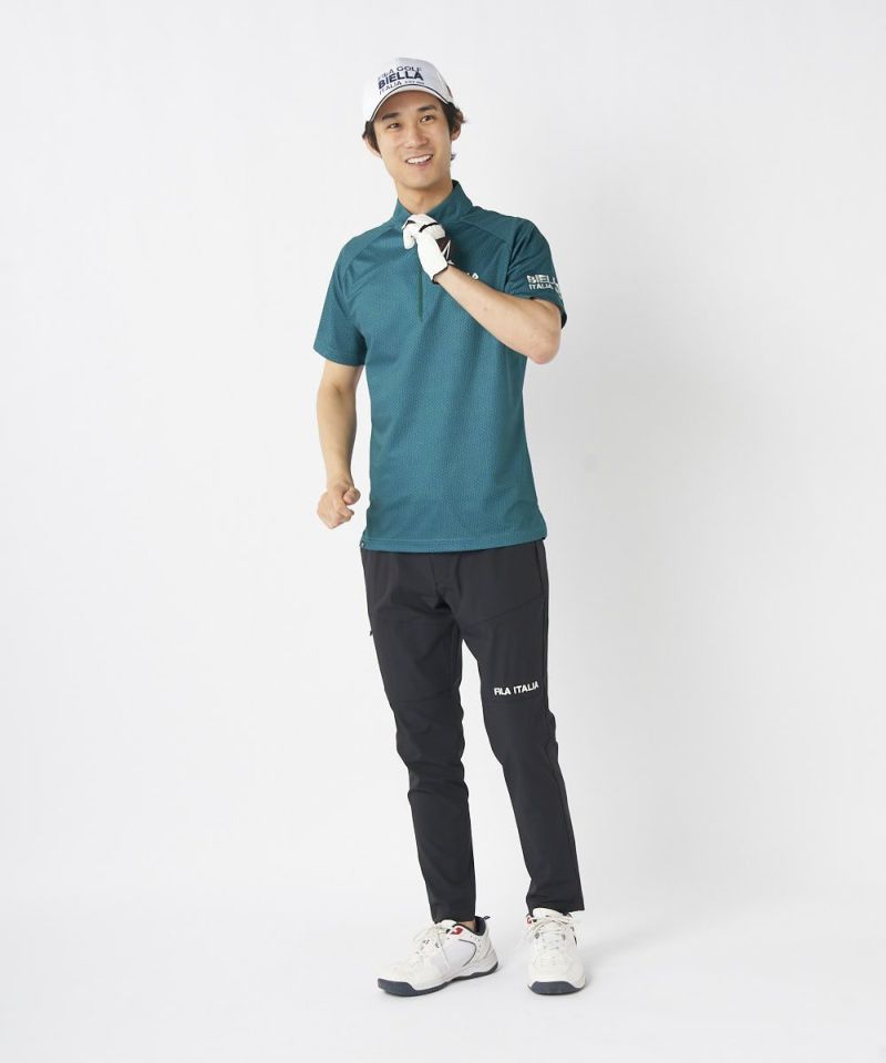 暑い夏ゴルフにぴったりのシャツです。裾にはボックスロゴを、袖には「BIELLA ITALIA EST. 1911」のロゴを施し、細部までこだわったデザインです。