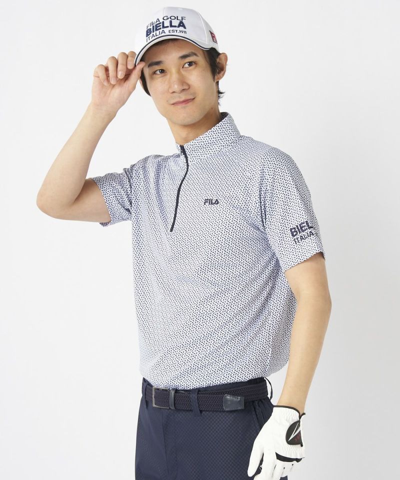 暑い夏ゴルフにぴったりのシャツです。裾にはボックスロゴを、袖には「BIELLA ITALIA EST. 1911」のロゴを施し、細部までこだわったデザインです。