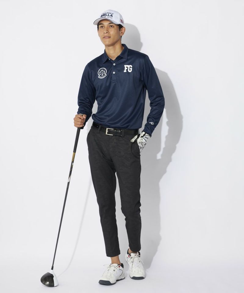 ストレッチの効いた軽量ツイル素材にエンボスでカモ柄を入れたパンツは、ゆったりと履けるシャーリング仕様。