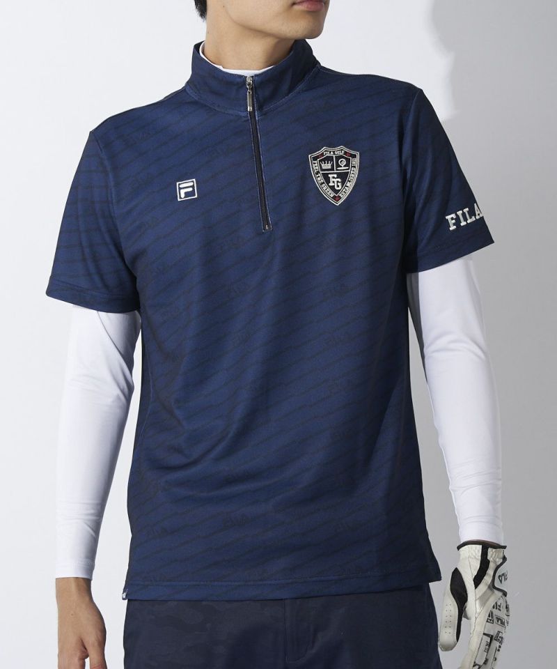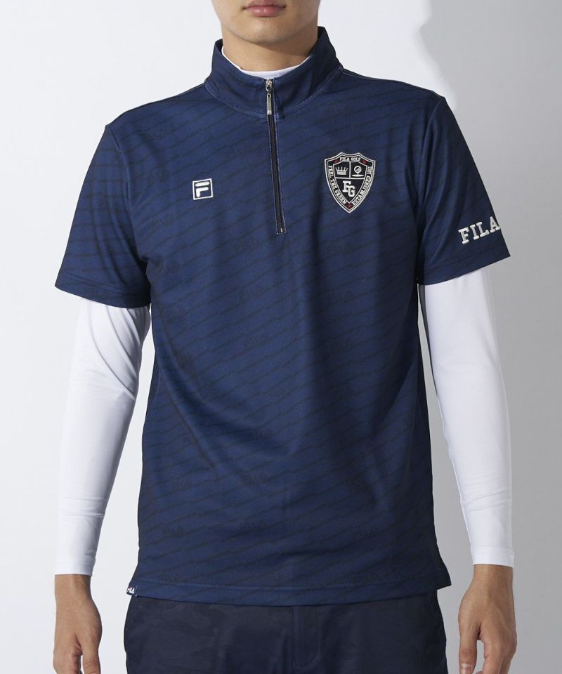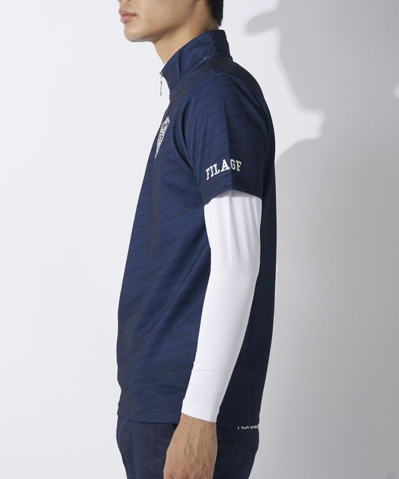 リサイクル素材のカノコを使用した半袖シャツ。右袖のラインテープが配色のポイントになっています。裾にスリットを付けて着用時のお腹周りのシワを軽減します。長袖インナーシャツとのセット商品です。